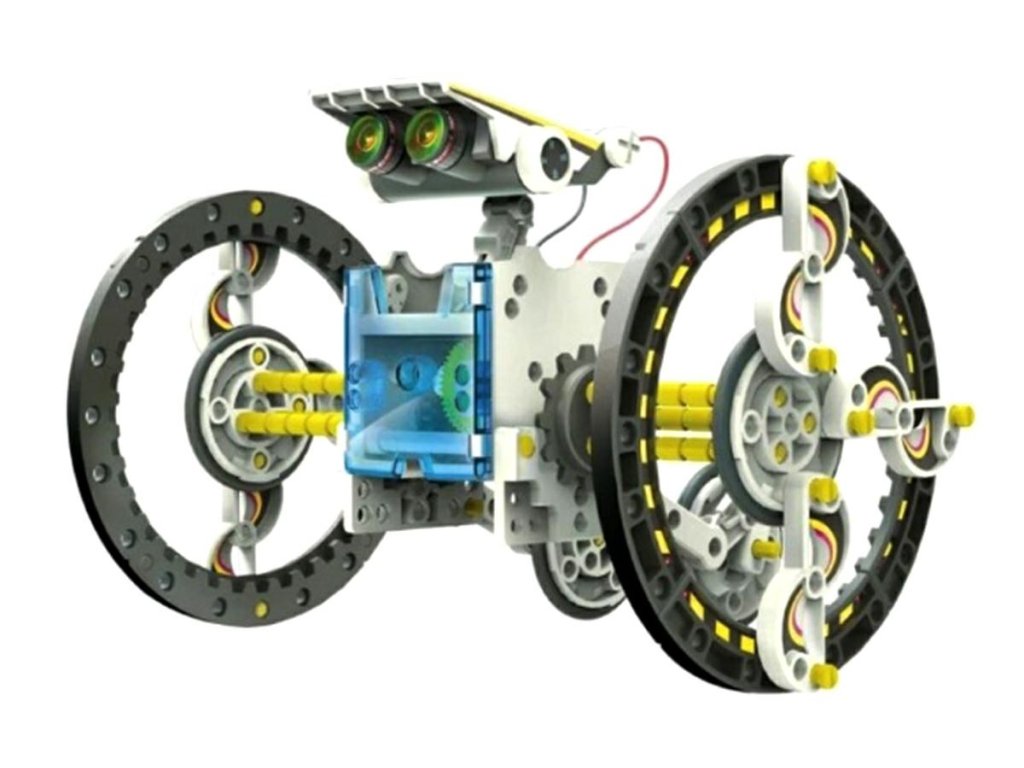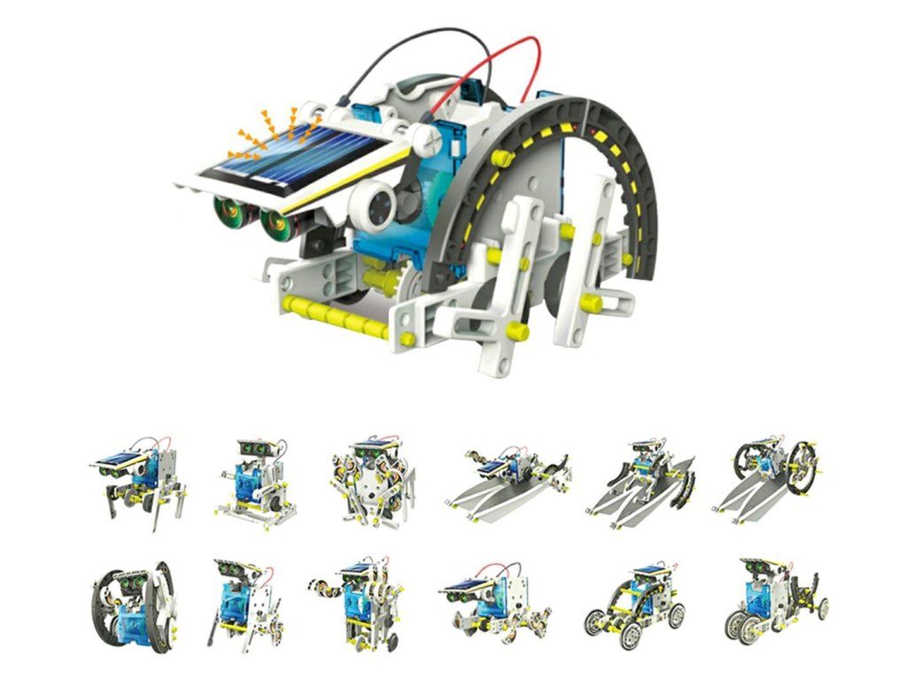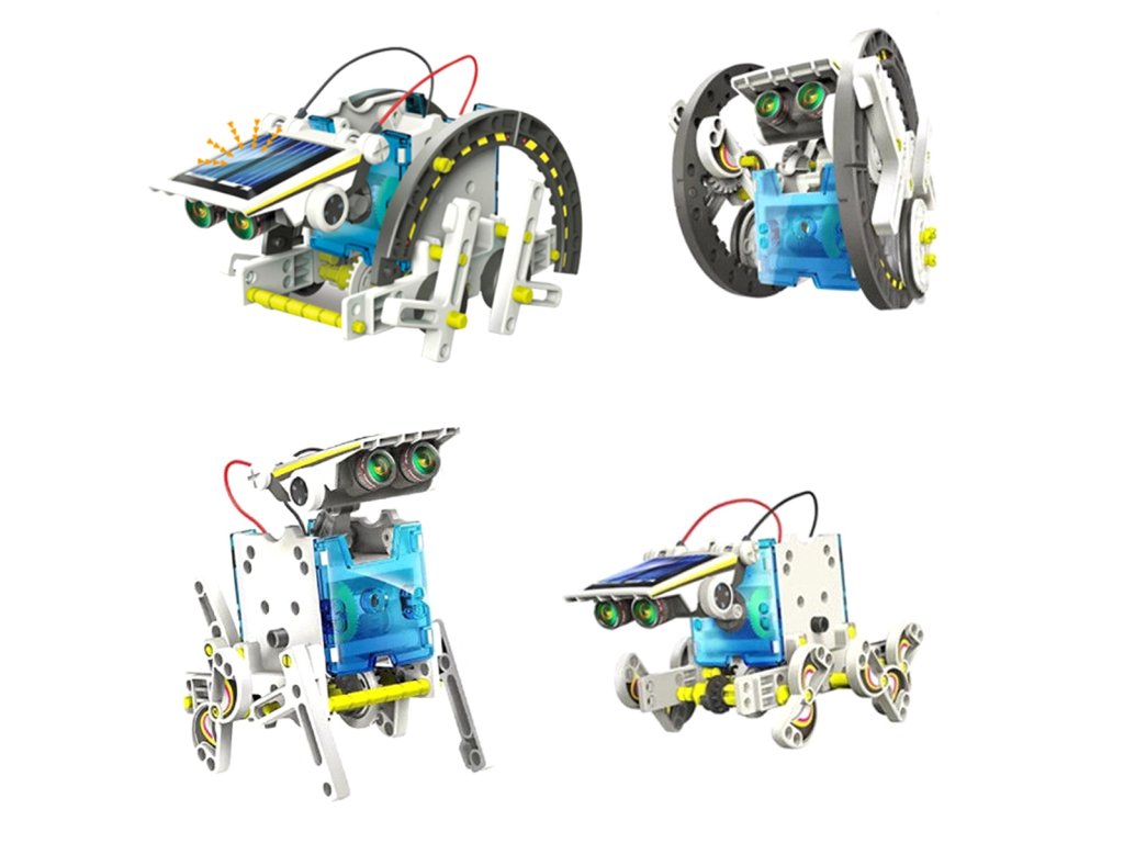 - Solární robot se dá přeměnit až na 14 různých modelů robotů. Je snadné postavit robota ze psa, který vrtí ocasem, a pak z něj běžícího brouka, chodícího kraba, surfaře nebo zombie robota! Hračka obsahuje unikátní příslušenství (součástí balení) a díly, které umožňují pohyb robota na souši i ve vodě.