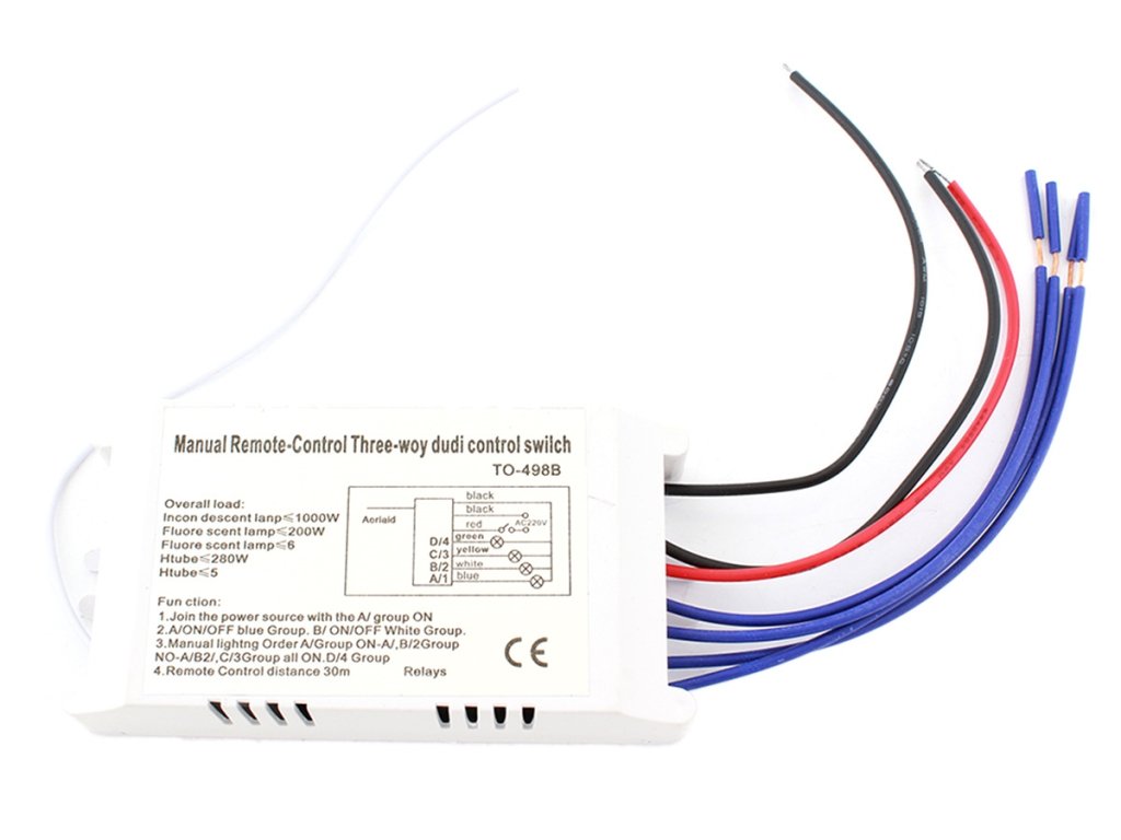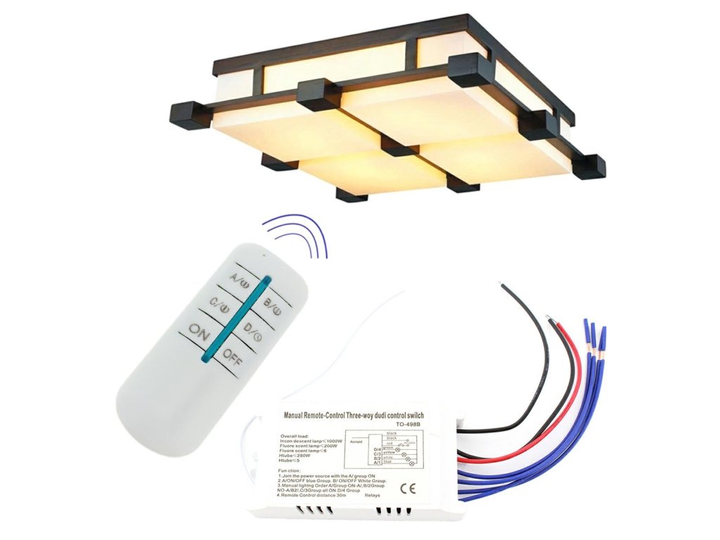 Bezdrátový vypínač osvětlení. Vybavena bezdrátovým dálkovým ovladačem, který vám umožní pohodlně zapínat a vypínat světla a další elektrická zařízení napájená z elektrické sítě 230V. Řadič produktu má až 4 kanály s maximálním zatížením až 1000W. Dálkový ovladač využívá rádiovou komunikaci, která neruší chod jiných zařízení a jeho dosah je až 30 metrů na volném prostranství. Včetně všech potřebných montážních prvků a kabeláže.