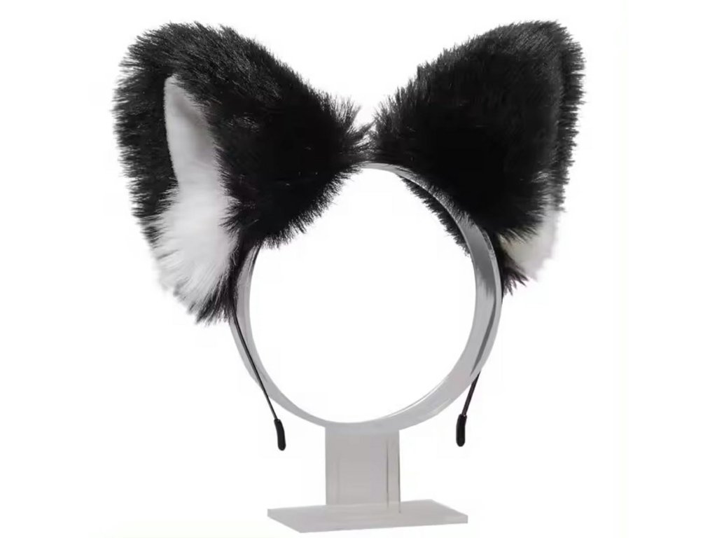 - Kočičí uši vyrobené z měkkého a na dotek příjemného materiálu.