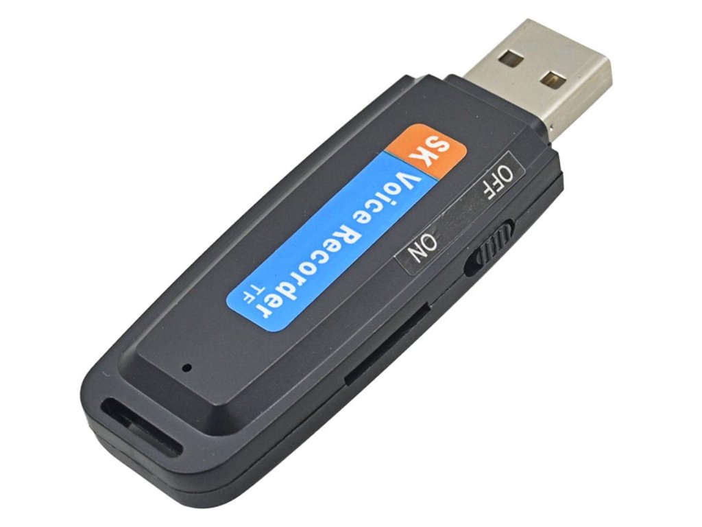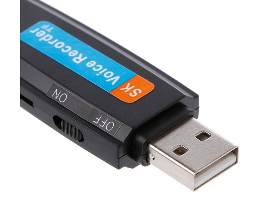 Flash disk s vestavěným digitálním hlasovým záznamníkem pro paměťovou kartu microSD. Vynikající a nepodezřelý způsob odposlechu s možností záznamu zvuku rychlostí až 128 kbps. Kompaktní rozměry - vejde se do kapsy kalhot nebo dokonce do peněženky. Skvělý produkt pro nahrávání přednášek, jednání, rozhovorů. Díky němu můžete někoho nahrát naprosto diskrétně.
