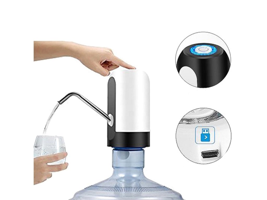 - Elektrická vodní pumpa – umožňuje přelévat vodu z velkých lahví do malých nádob.