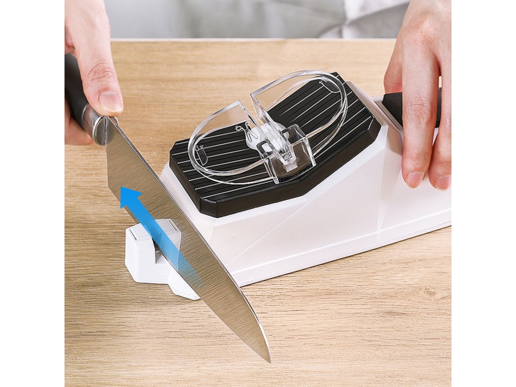 Vysoce kvalitní elektrický brousek na nože. Tento pokročilý nástroj zajistí správné a komplexní broušení i těch nejtupějších a nejvíce opomíjených nožů díky použití až 3 různě ostřících zásuvek. Předbroušení provedeme v objímce v přední části brousku, poté nůž v horní části potažené plastem uhladíme a nakonec vyleštíme na podložce v zadní části přístroje. Přesvědčte se sami, jak rychle můžete své kuchyňské nože dát do pořádku a plně funkční.