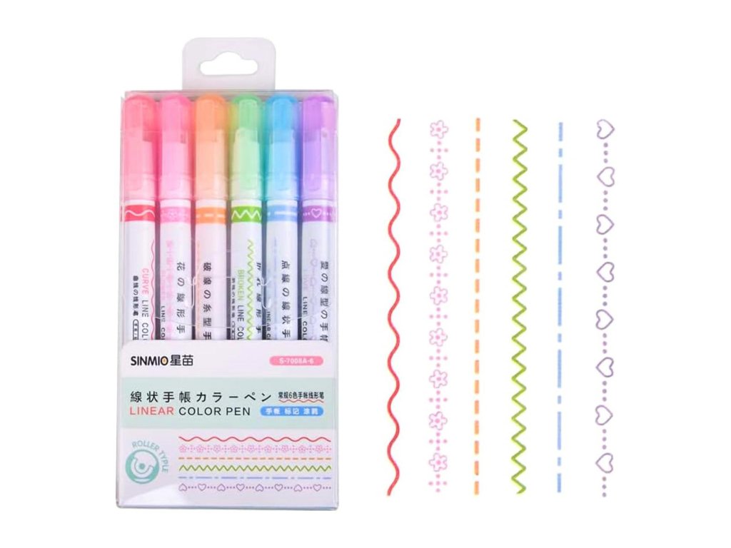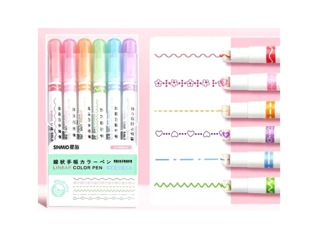 Sada 6 různých barevných fixů. Každý fix maluje jiný vzor. Atraktivní vzhled vzorů povzbudí děti, aby se naučily psát. Jsou ideální pro zvýraznění poznámek nebo vytváření dekorací. Ergonomický tvar umožňuje pohodlné používání pera. Inkoust rychle schne, takže se poznámky nerozmazávají.