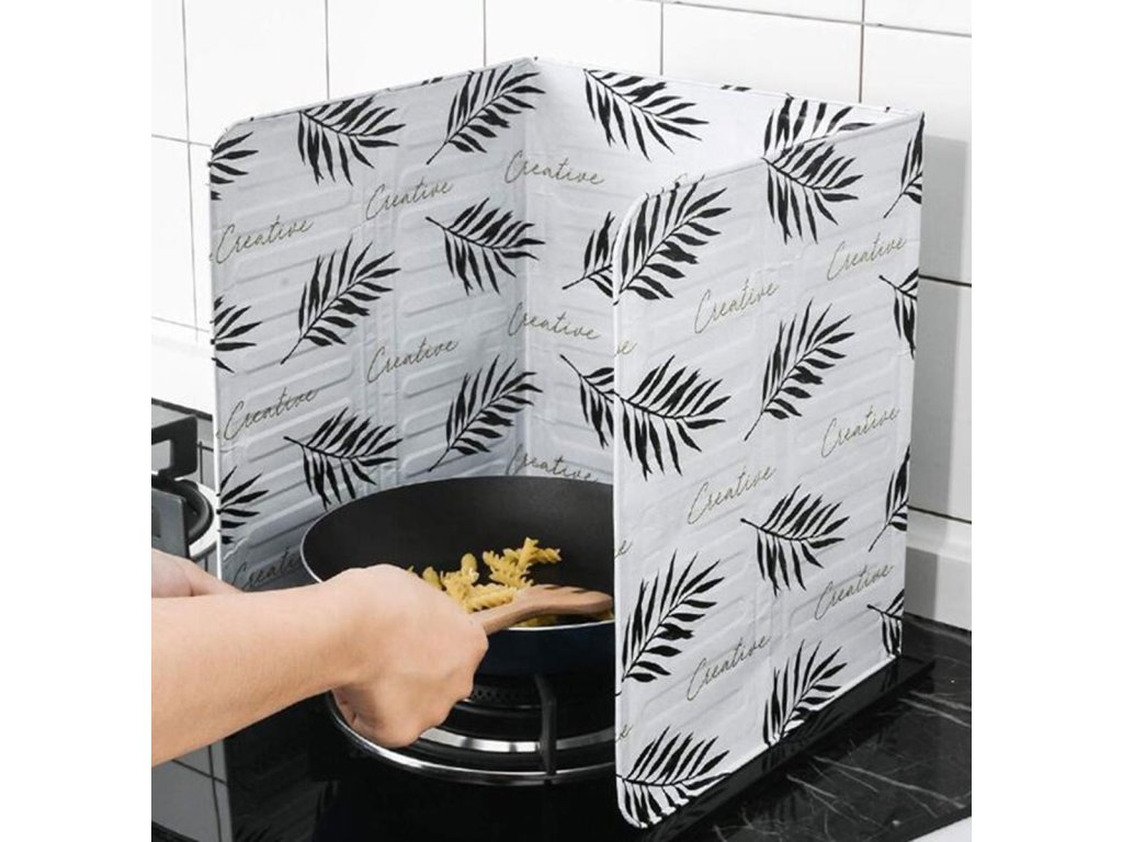 - Hliníková podložka chránící prostor kolem plynového sporáku.