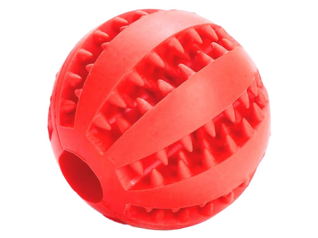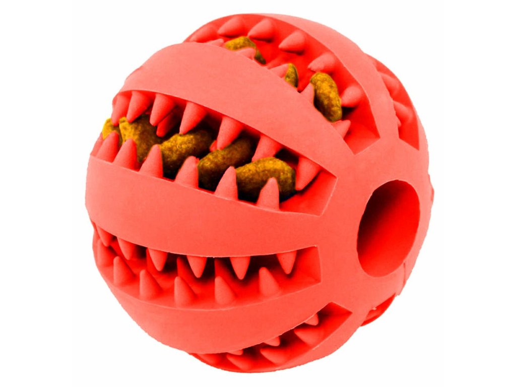 Silikonová žvýkací hračka pro psy. Pomáhá udržovat správnou ústní hygienu našeho mazlíčka. Míč má speciální otvory, do kterých můžete umístit oblíbené pamlsky vašeho mazlíčka. Jedná se o odolnou a extrémně užitečnou hračku, která je vhodná i na aportování.