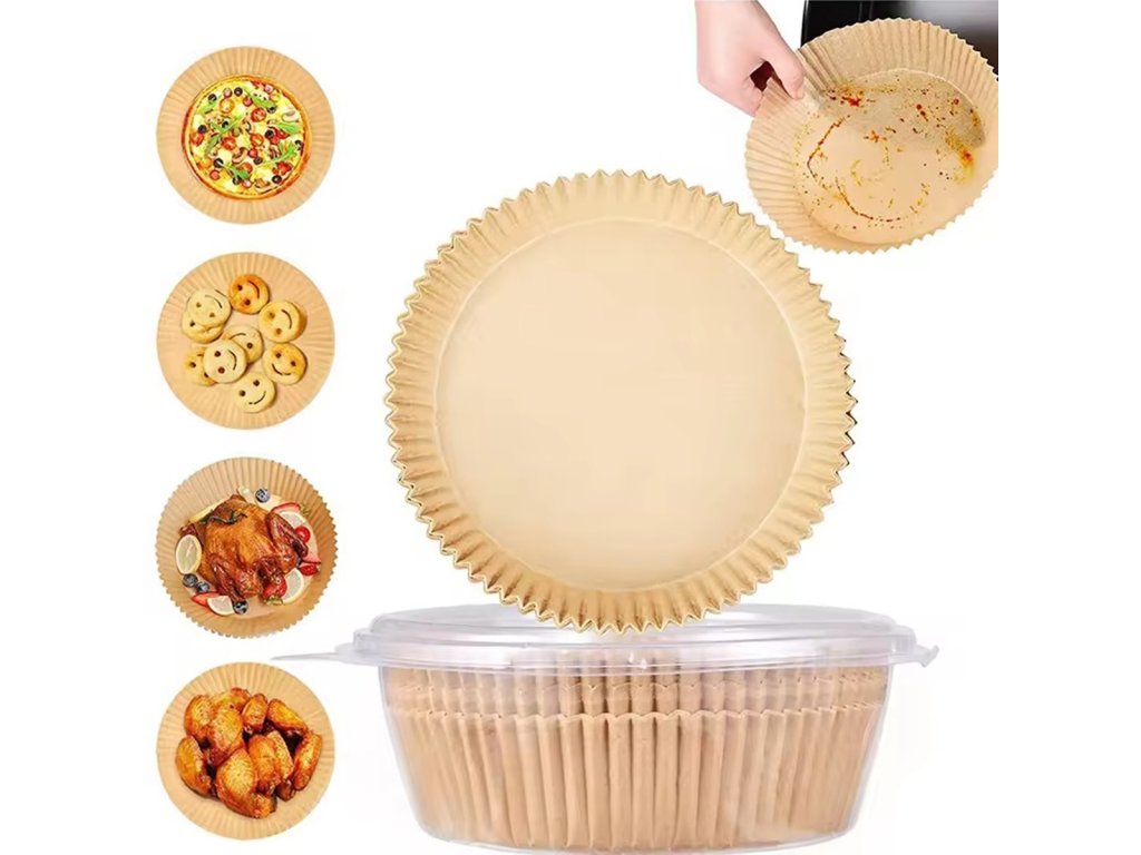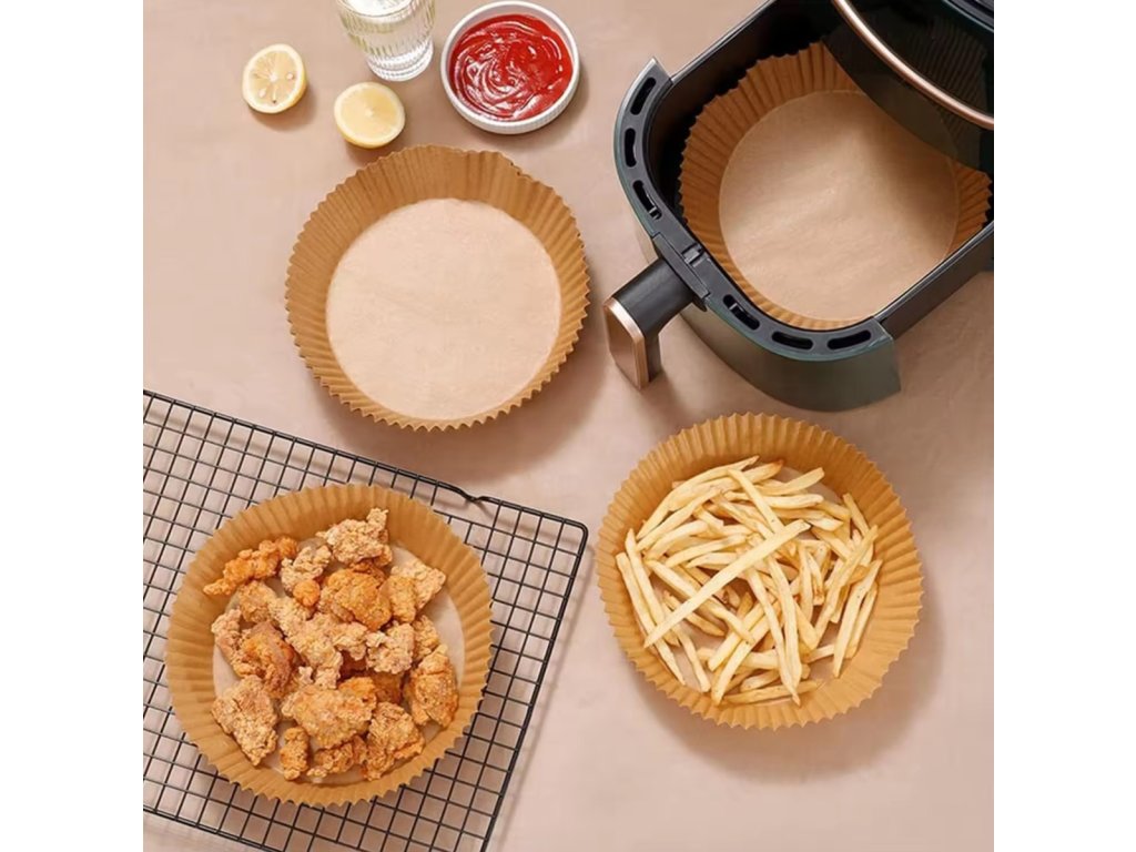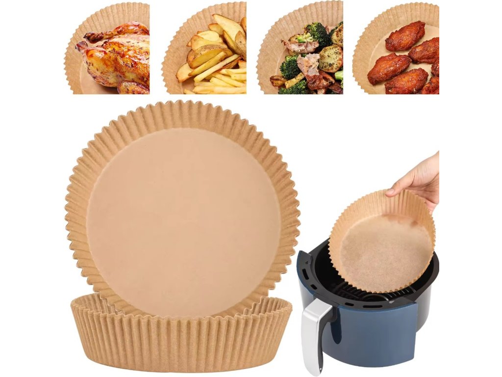 Pečicí papír do horkovzdušných fritéz - sada 50 kusů. Tento produkt pomáhá udržovat zařízení čisté a zabraňuje připalování jídla během smažení. Vložky jsou vhodné i do mikrovlnných trub, troueb a dalších spotřebičů. Papír je odolný vůči vodě a oleji, takže se nelepí na povrch fritézy.