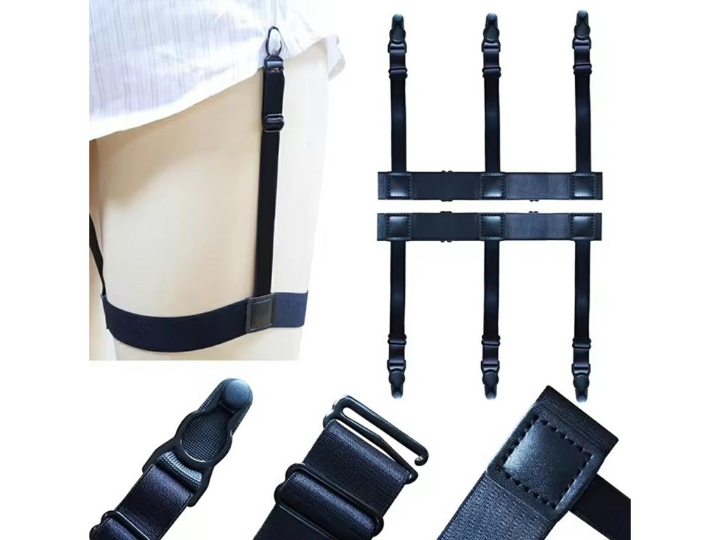 Diskrétní podvazky, které udrží košili v kalhotách a sukni. Umožňují efektivně eliminovat nevzhledné záhyby na košili. Možnost nastavení pasu a stehna zvyšuje komfort používání. Postroje jsou bezpečné pro tělo i naše oblečení a jsou nenápadné. Při důležité schůzce už nemusíte neustále upravovat svou oblíbenou košili!