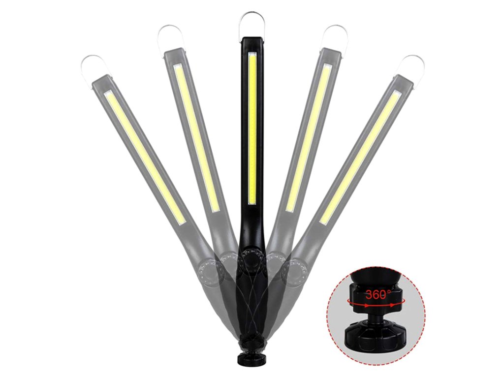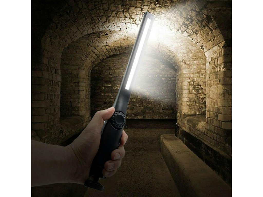 Spolehlivá svítící LED lampa pro kutily vybavená silnými COB LED diodami - nenahraditelná v dílnách, servisních střediscích a kutilských garážích. Vybaveno praktickým fyzickým vypínačem s plynulým nastavením světelného výkonu a vestavěnou baterií, která výrazně usnadňuje osvětlení pracovního prostoru mimo zásuvku. Otočná základna (360 stupňů) je vybavena silným magnetem, který umožňuje připevnění lampy na kovový povrch. Lampa má také přídavný háček, díky kterému ji snadno zavěsíte na zeď.