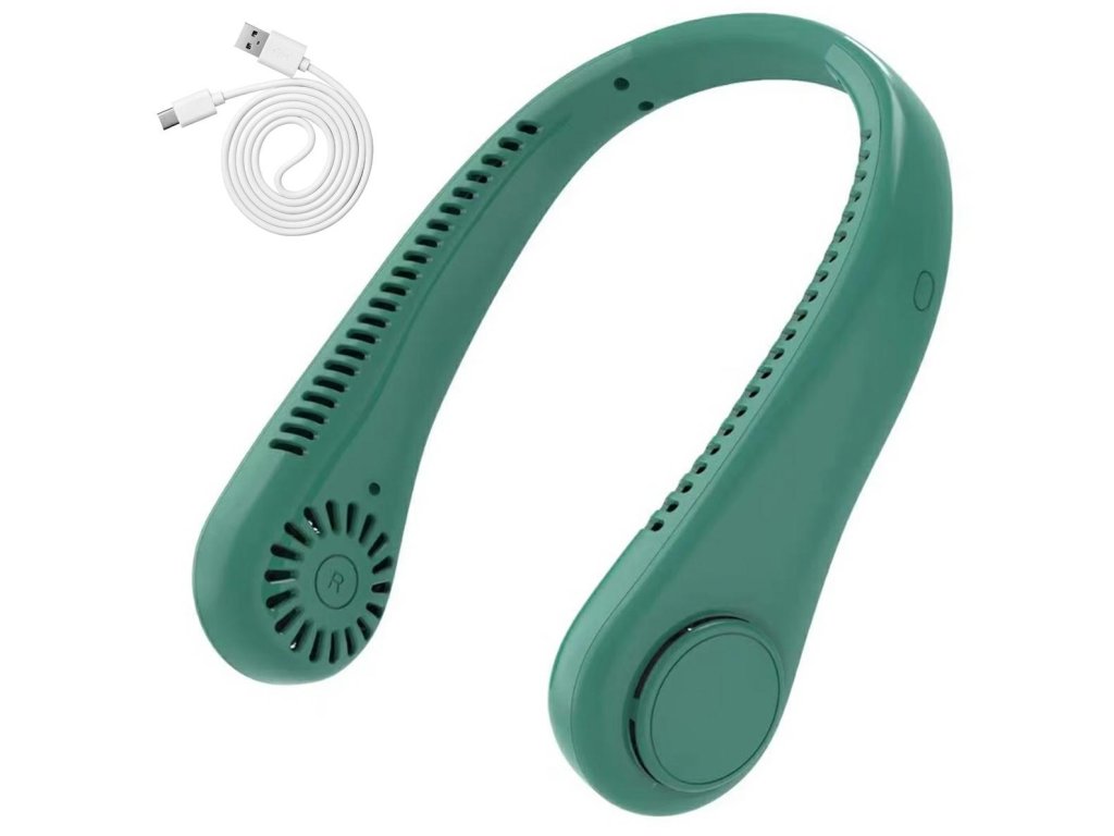 Bezlopatkový, kompaktní přenosný ventilátor. Promyšlená konstrukce ve tvaru sluchátek umožňuje pohodlné zavěšení na krk. Skvěle se hodí na cesty, ale i pro domácí použití (díky zabudovanému stojánku). Napájení z vestavěné baterie, nabíjení přes USB kabel. Možnost nastavení průtoku vzduchu (3 rychlosti). Nenahraditelný při práci u počítače v horkých dnech.