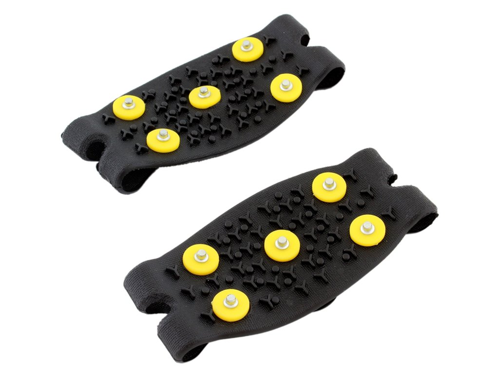 Protiskluzové návleky na boty (mačky), vybavené kovovými hroty! Jsou ideální pro pěší turistiku v lesích a horách i trekking v náročném terénu a povětrnostních podmínkách. Účinně chrání před uklouznutím a pádem díky použití 10 hrotů z nerezové oceli (5 na podložku). Neunavují nohy, jsou velmi lehké! Dobře se přizpůsobí tvaru boty! Díky použití silikonu je lze upravit na několik velikostí obuvi (36-41), aniž by hrozilo jejich sklouznutí.