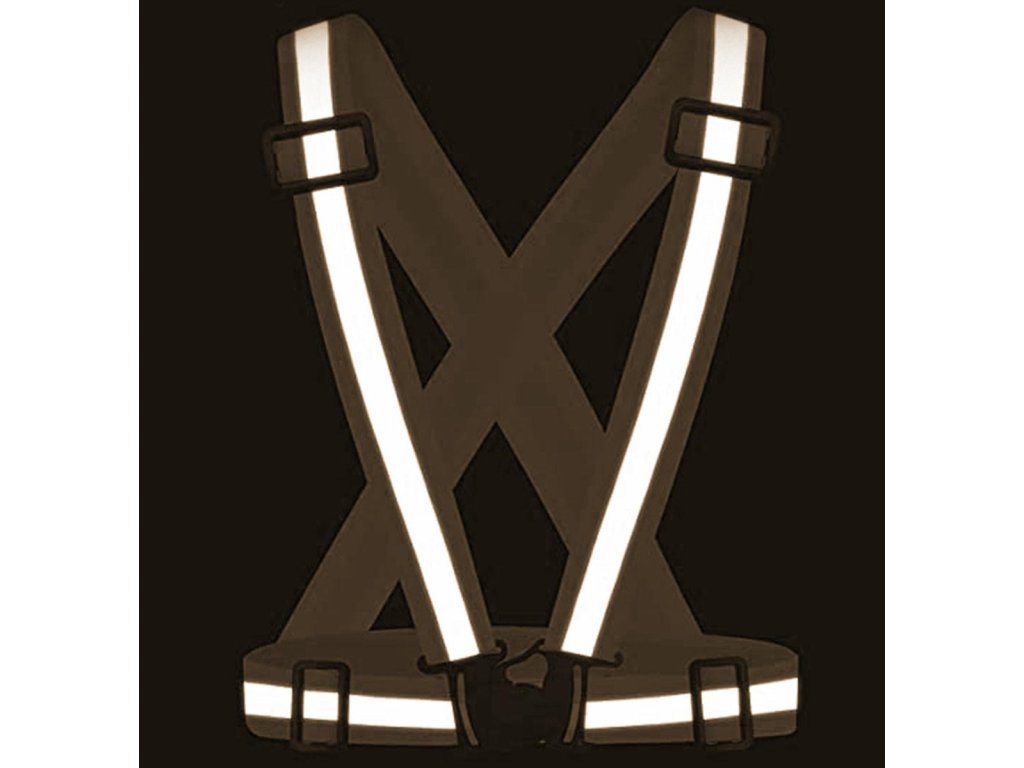 - Reflexní podvazková vesta nošená přes hrudník výrazně zlepšuje (i několikrát) vaši viditelnost na silnici po setmění a tím i vaši bezpečnost.