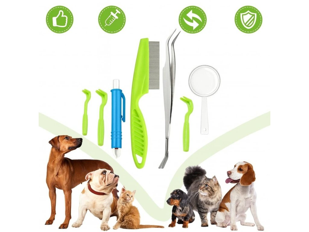- Oboustranná pinzeta – přesné a bezpečné odstranění parazitů.