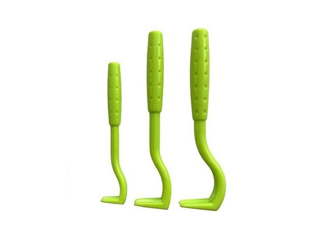 - Trojdílné háčky – různé velikosti umožňují odstranění klíšťat jakékoli velikosti.