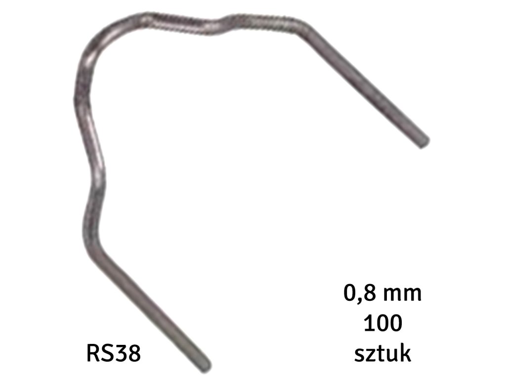 Sada 100 ks sponek určených pro svářeče plastů a svářeče. Sponky typu RS38, průměr 0,8 mm. Vyrobeno z masivní nerezové oceli.