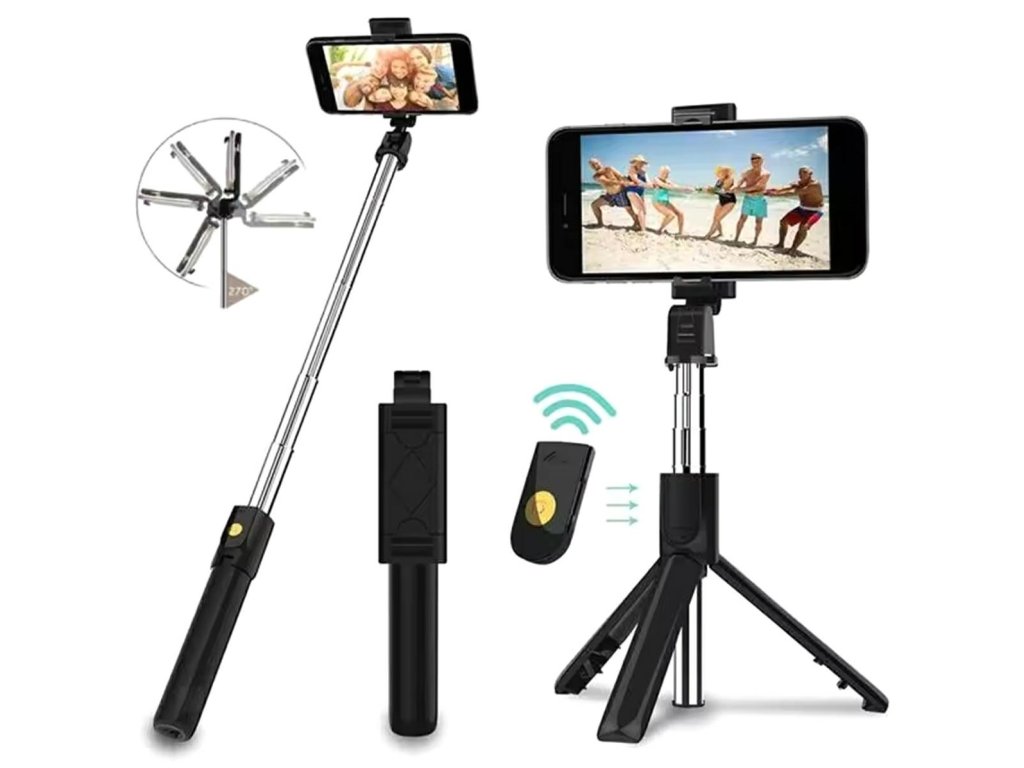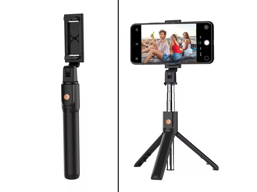 - TRIPOD je vybaven pohodlnou Bluetooth spouští (dálkové ovládání na pouzdru selfie tyče).