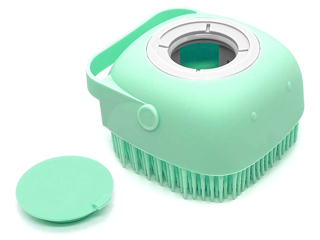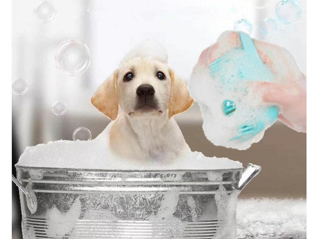 Silikonová žínka pro domácí mazlíčky. Měkké výstupky dokonale sbírají nečistoty a masírují srst našeho mazlíčka. Vestavěná nádržka na šampon usnadňuje distribuci šamponu během mytí - stačí při koupání vyždímat žínku. Pohodlná rukojeť usnadňuje držení kartáče při mytí.