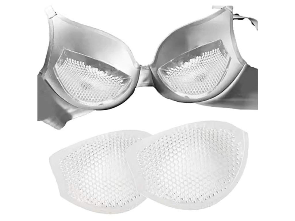 Silikonové výplňové vložky do podprsenky - opakovaně použitelné. Dokonale zvednou ňadra při zachování jejich přirozeného tvaru. Vyrobeno z bezpečného a prodyšného materiálu. Obě vložky mají speciální perforaci, která umožňuje neustálou výměnu vzduchu. Voděodolný silikon umožňuje použití vložek k plavkám.