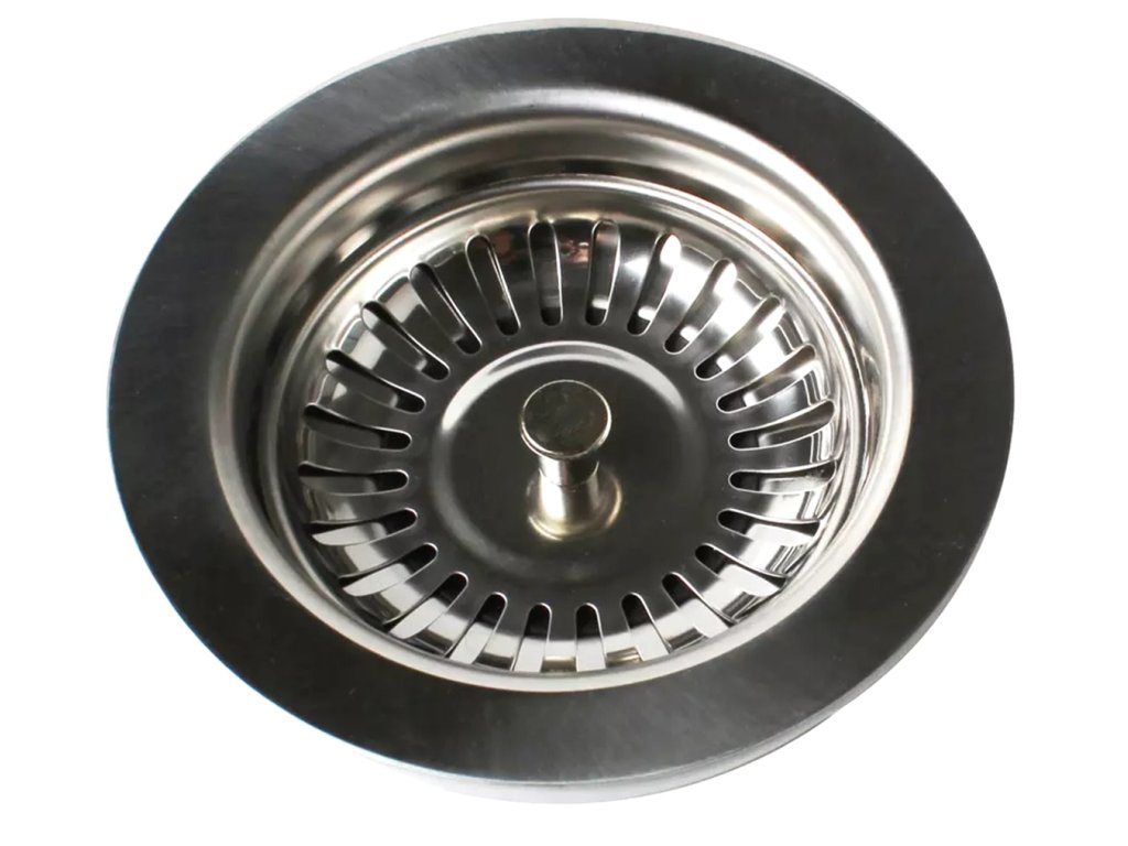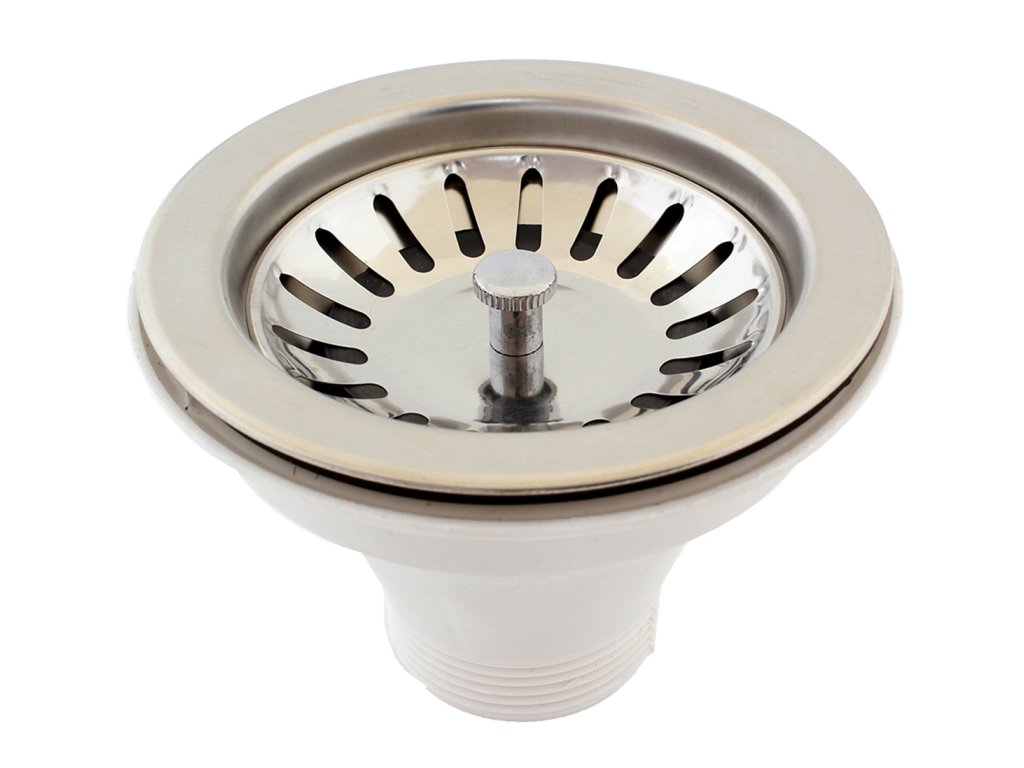 Pevná kovová zátka na dřez se všemi potřebnými montážními doplňky. Standardní rozměry usnadňují montáž vašeho kuchyňského dřezu.