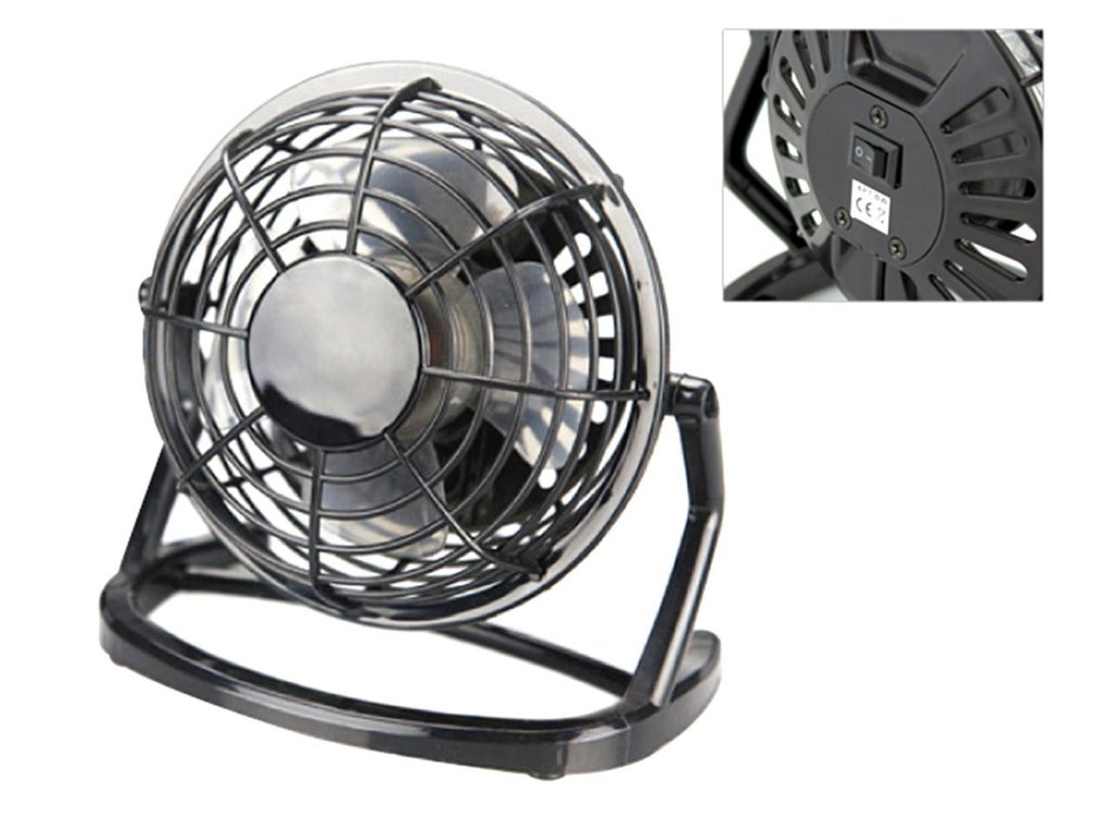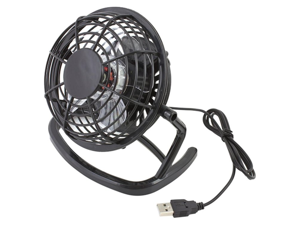 Stojací ventilátor napájený z USB portu - nenahraditelný při práci u počítače v horkých dnech.
