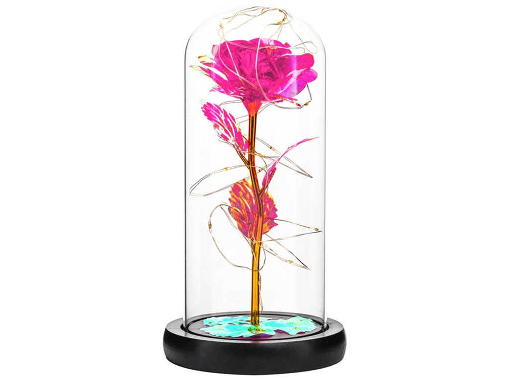 Věčná růže umístěná ve skleněné dóze. Díky dodatečnému RGB LED podsvícení vypadá růže skvěle i po setmění. Kompletní s estetickou dárkovou krabičkou. Skvělý nápad na Valentýna, narozeniny nebo netradiční dárek :)