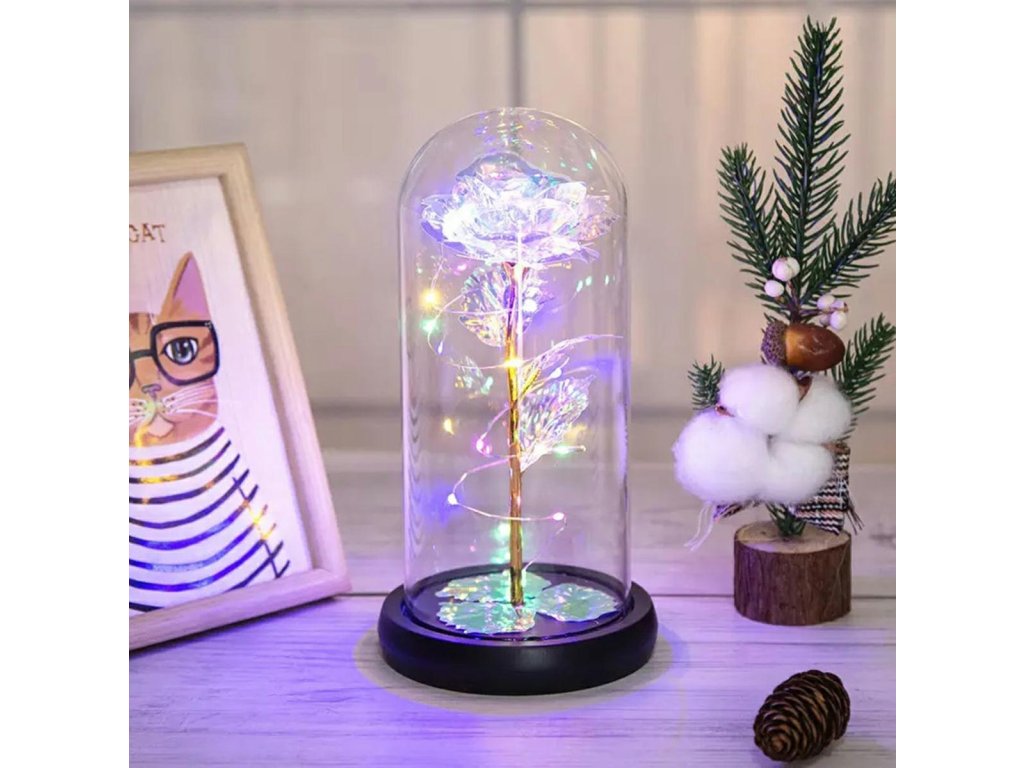 Věčná růže umístěná ve skleněné dóze. Díky dodatečnému RGB LED podsvícení vypadá růže skvěle i po setmění. Kompletní s estetickou dárkovou krabičkou. Skvělý nápad na Valentýna, narozeniny nebo netradiční dárek :)