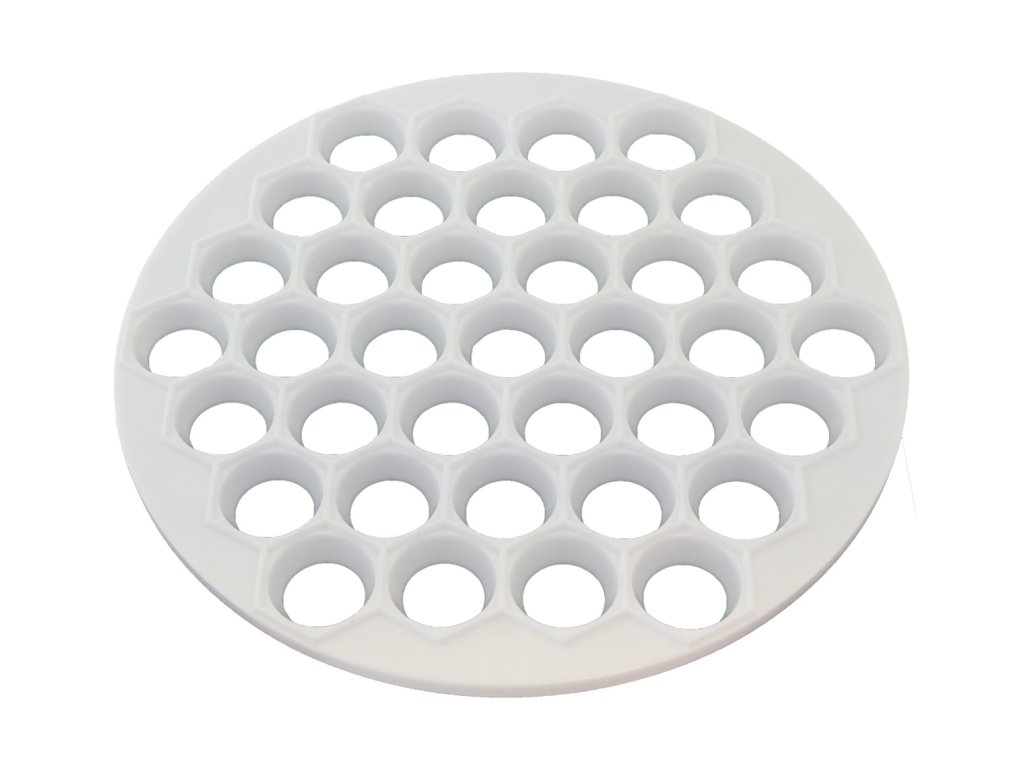 Forma na výrobu knedlíků a pelmenů. S naší formou můžete rychle vytvarovat těsto na lahodné knedlíky nebo placičky, které můžete naplnit jakýmikoli ingrediencemi. Vyrobena z odolného plastu, který lze rychle omýt pod tekoucí vodou, má 37 otvorů a je neuvěřitelně snadno použitelná. Velmi usnadňuje hromadnou výrobu knedlíků.