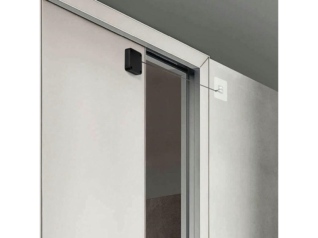 Robustní a kompaktní zavírač dveří pro interiérové dveře. Velmi jednoduchá instalace a obsluha - stačí nalepit zavírač dveří na zeď a určenou kliku na křídlo dveří, poté zatáhnout za ocelové lanko a zavěsit ho na kliku. Zcela bezúdržbový - nevyžaduje žádné další zdroje energie.