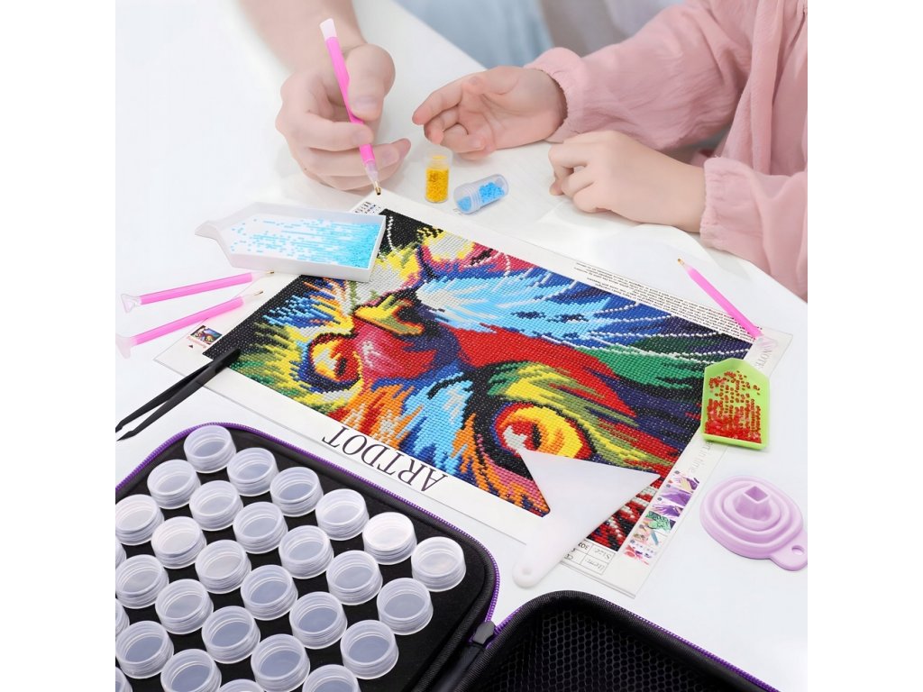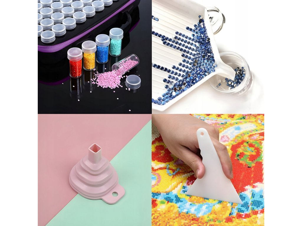 Sada obsahuje nástroje k vytvoření jedinečných uměleckých děl technikou diamantové malby.