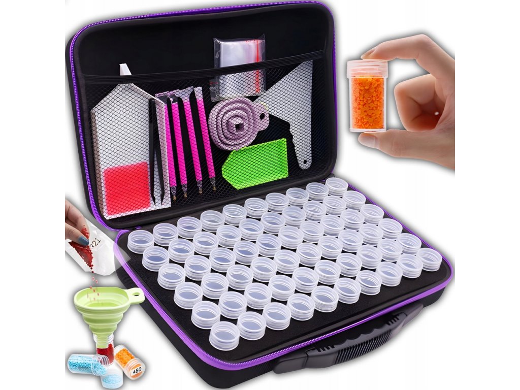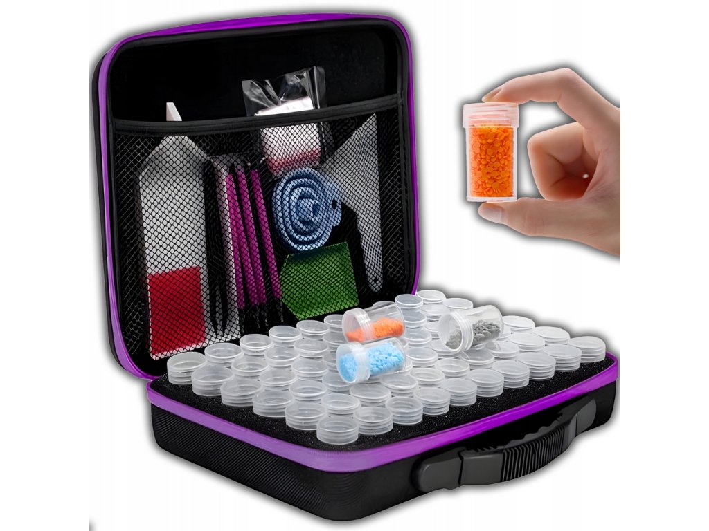 Organizér pro diamantové vyšívání nabízí až 60 nádob, do kterých se vejde značné množství krystalů.