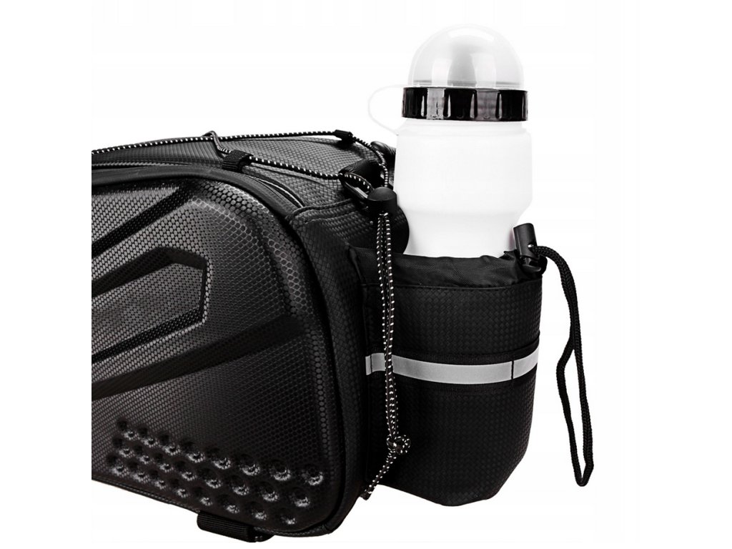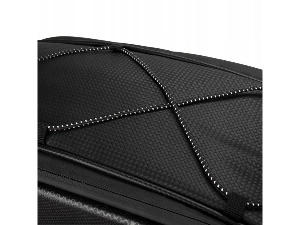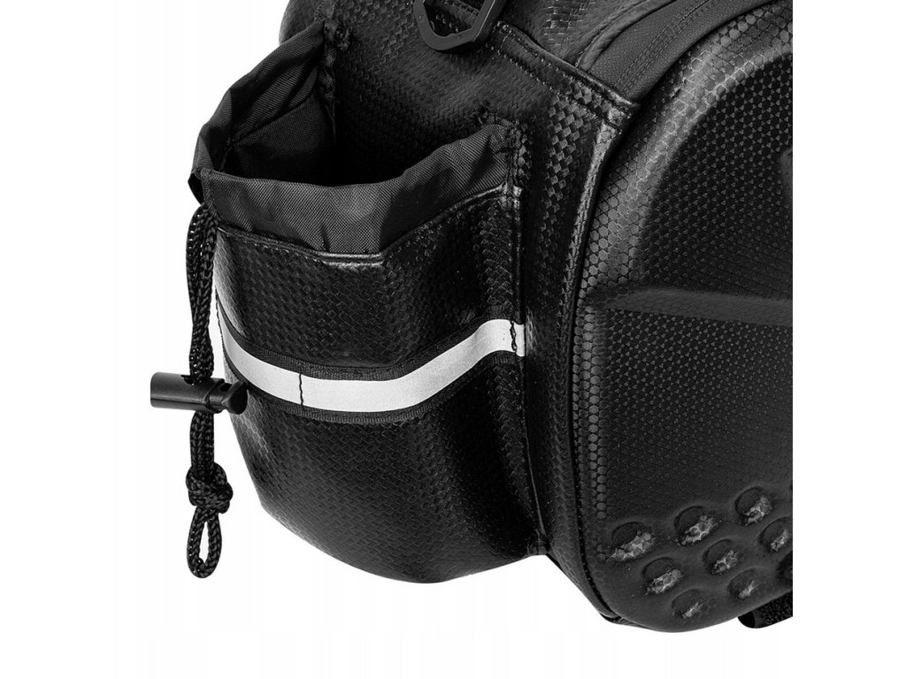 Brašna na nosič kola polstrovaná voděodolná reflexní taška na kufr 10lVyztužená taška na kolo v černé barvě na nosič s dlouhým popruhem a rozšiřitelnými bočními kapsami.