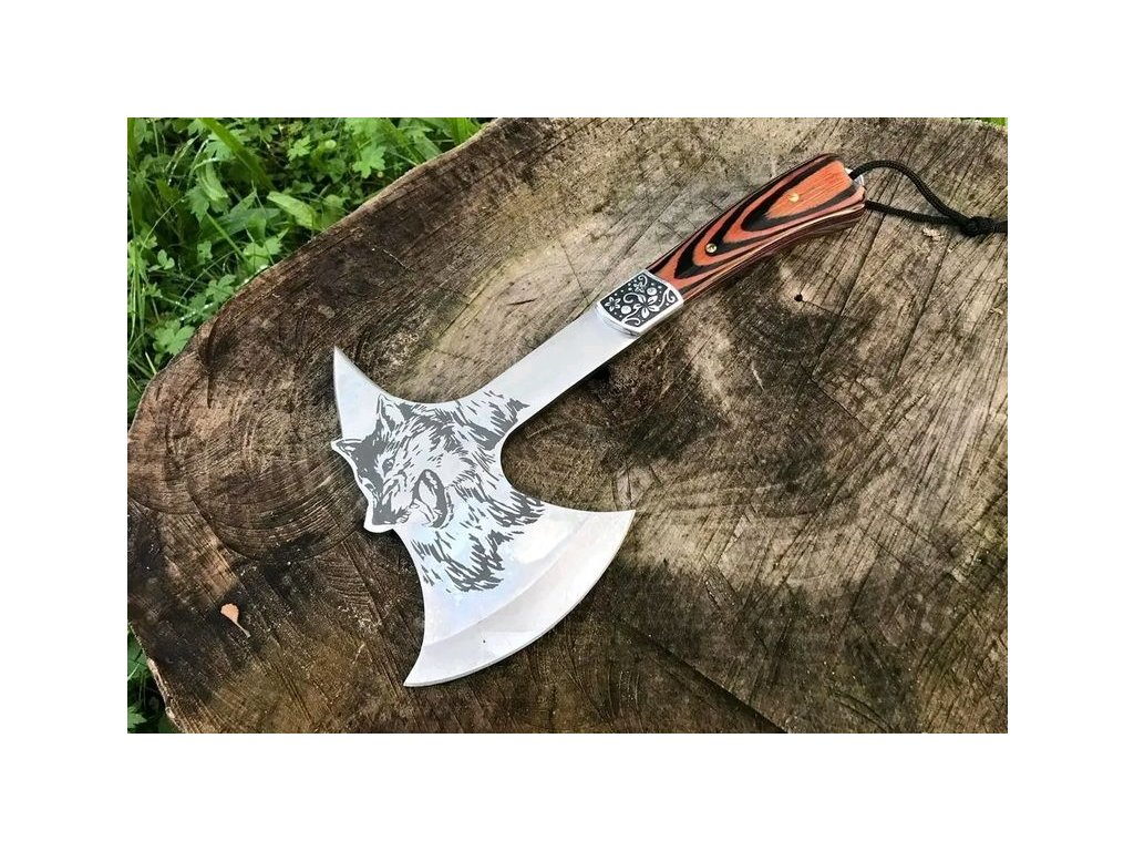 Sekera nůž sekera tomahawk sekera vlk pouzdro 32cmSekera je vyrobena z oceli vysoké tvrdosti.