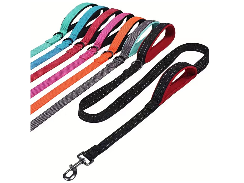 NUXIE® PRÉMIOVÉ VODÍTKO PRO VÝCVIK PSŮ LEHKÉ SILNÉ REFLEXNÍ POHODLNÉ DVĚ RUKOJETI 1,5 M