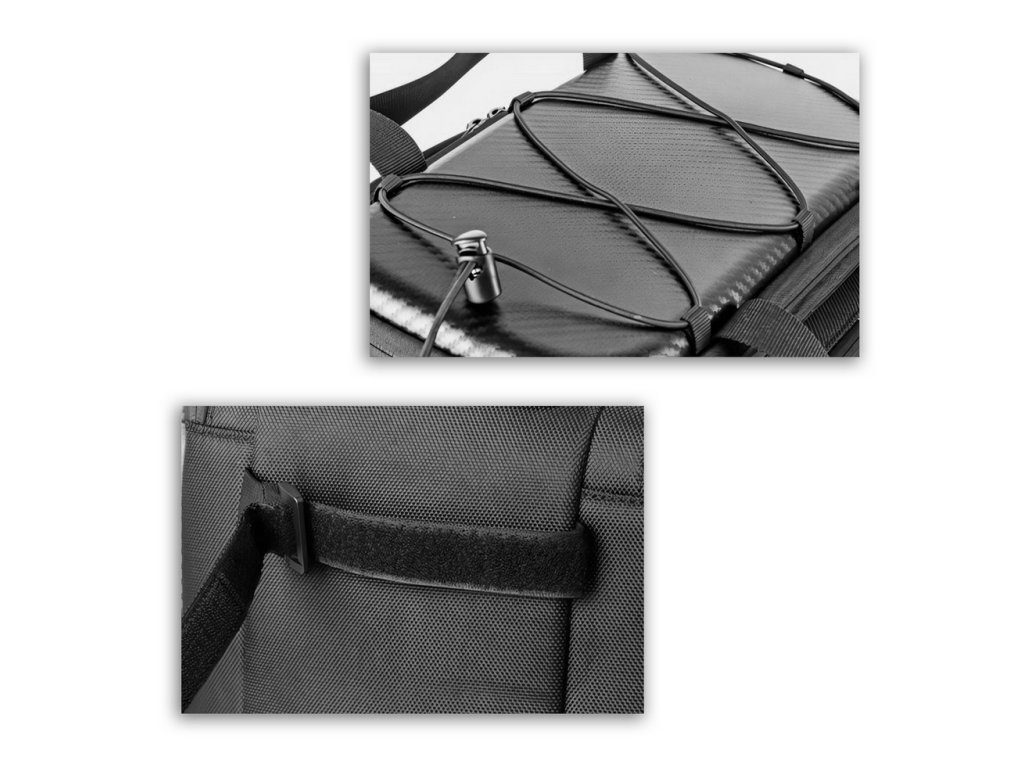 - Materiál: 300D polyester + PVC: vysoce nehygroskopický materiál (neabsorbuje vodu) s vysokou odolností proti poškození / protržení