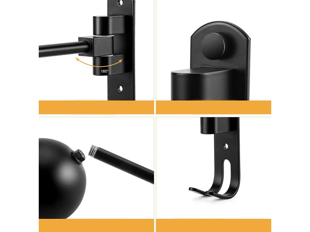 - Materiál: PP plast (koule a závěs) + nerezová ocel (nástěnný držák)