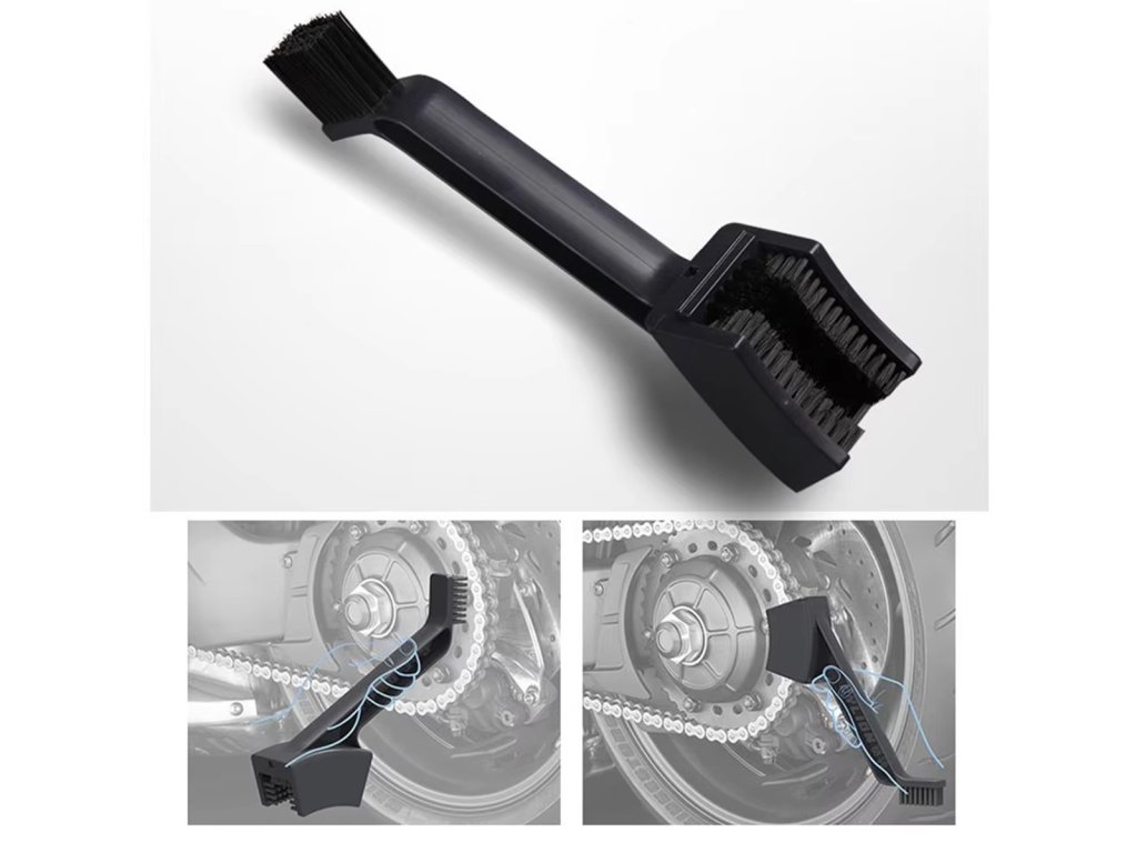 Velmi praktický kartáček se dvěma konci pro čištění řetězu bez nutnosti sundávat jej z kola. Byl dokonale profilován pro usnadnění údržby řetězů jízdních kol a motocyklů. Tím končí časově náročné ruční čištění řetězu. Už ji nemusíte rozepínat, namáčet a sušit – což stojí spoustu drahocenného času a nervů.
