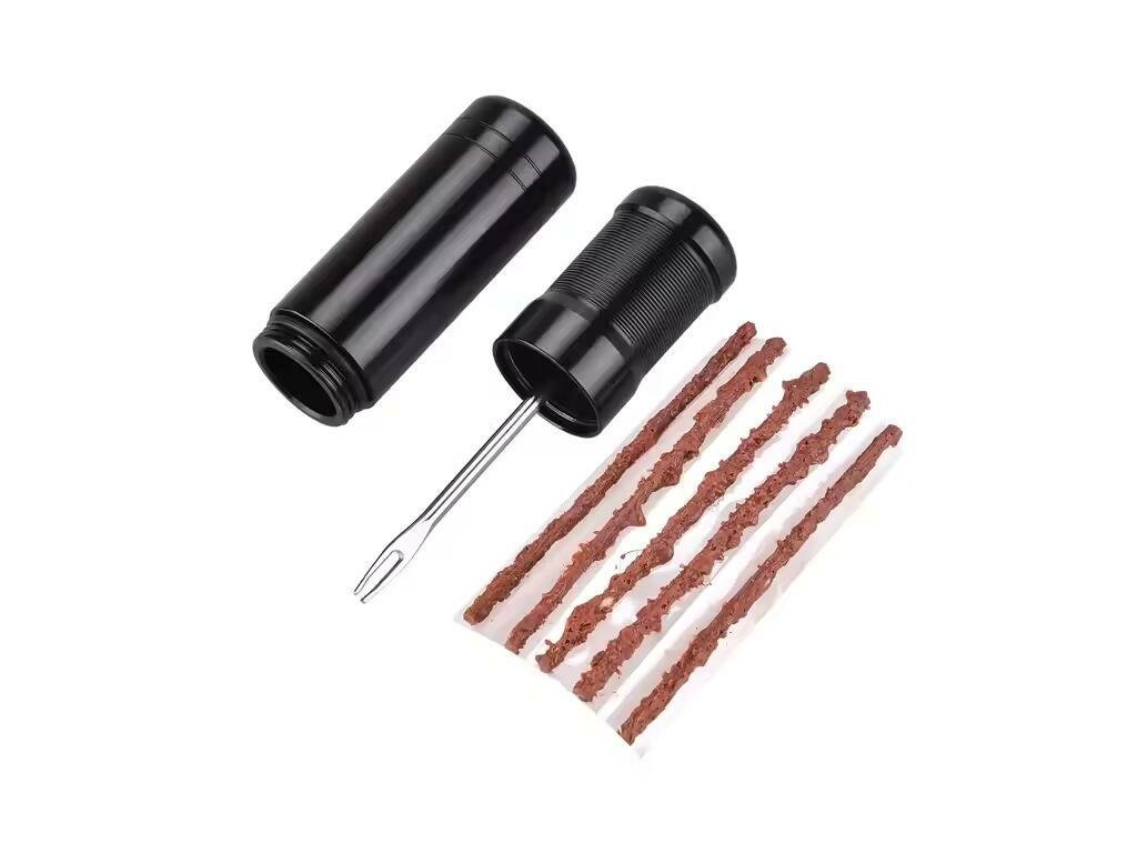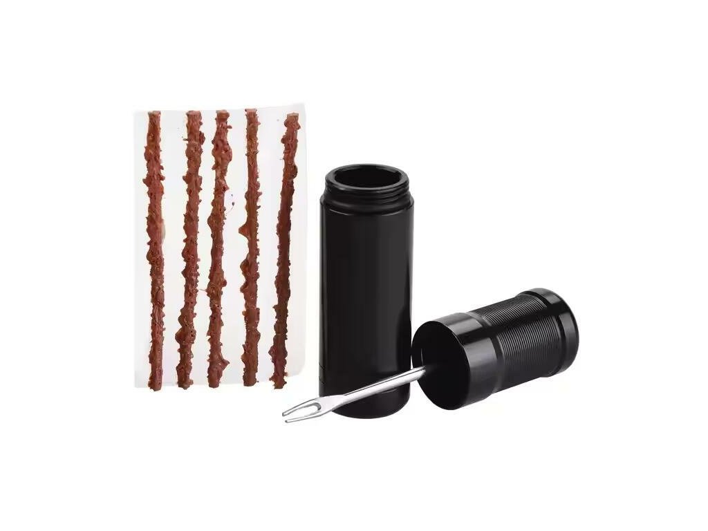Sada na opravu bezdušových pneumatik. Pasuje na jakékoli kolo, snadno se používá. Nástroj na opravu pneumatik, popruhy jsou vyrobeny z vulkanizované gumy, úložný box je odolný a kompaktní a vložka je bezpečně uložena.