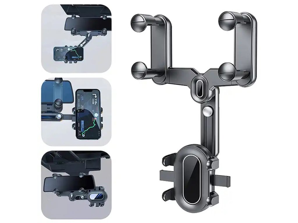 Univerzální držák do auta pro mobilní zařízení. Montáž na zpětné zrcátko zajišťuje pohodlné používání telefonu řidičem. Možnost plně nastavit úhel telefonu v 360stupňové rovině umožňuje umístit jej tak, aby byl displej dokonale viditelný. Pohodlné nastavitelné rameno dále zvyšuje komfort používání. Kompatibilní se všemi standardními smartphony a tablety.Vlastnosti a specifikace produktu: