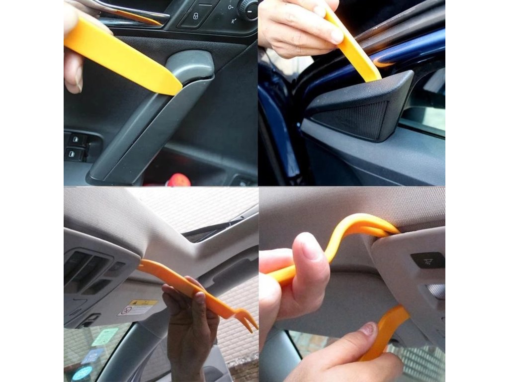 4dílná sada nářadí pro bezpečnou demontáž autočalounění. Špičková kvalita! Naše stahováky jsou vyrobeny z pevného a odolného plastu, který umožňuje bezpečné a rychlé sejmutí čalounění!