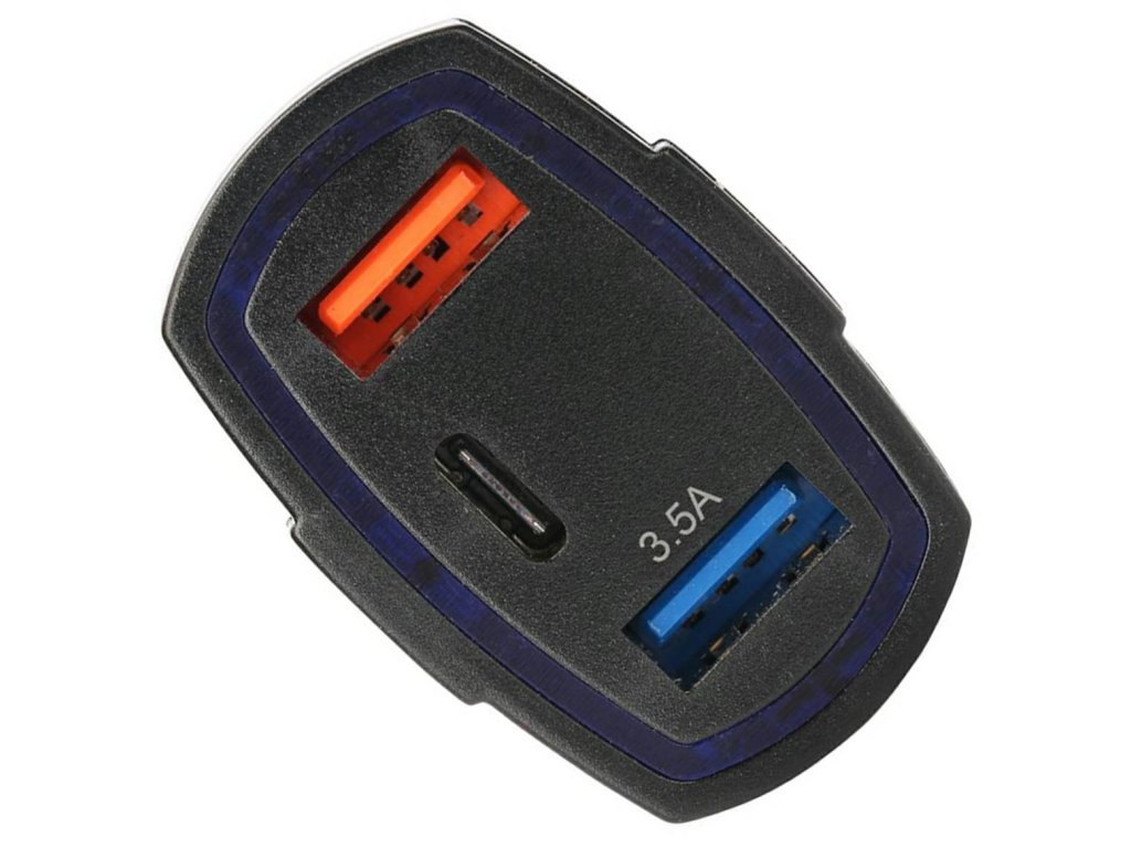 Výborná a extrémně praktická nabíječka do auta pro nabíjení vašich USB zařízení na cestách! Napájení standardní 12 nebo 24V zásuvkou autozapalovače (takže jej můžete použít i v kamionech!). Vybaveno 2 standardními USB porty a 1 USB C portem s maximálním proudem 3,1A! Nabíječka sama přizpůsobí proud možnostem nabíjeného zařízení, čímž zabrání poškození jeho baterie! Osvětlená přední strana zařízení usnadňuje připojení USB kabelu ve ztížených světelných podmínkách. Extrémně kompaktní design nezabere v autě mnoho místa a vyčnívá ze zásuvky autozapalovače jen o pár centimetrů! To je skvělá pomůcka, při cestování zcela nenahraditelná!
