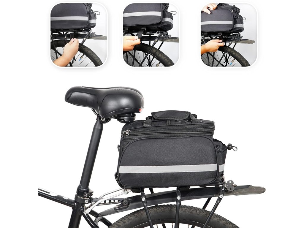 Vlastnosti produktu:- Taška se montuje na zadní nosič jízdního kola pomocí suchého zipu.