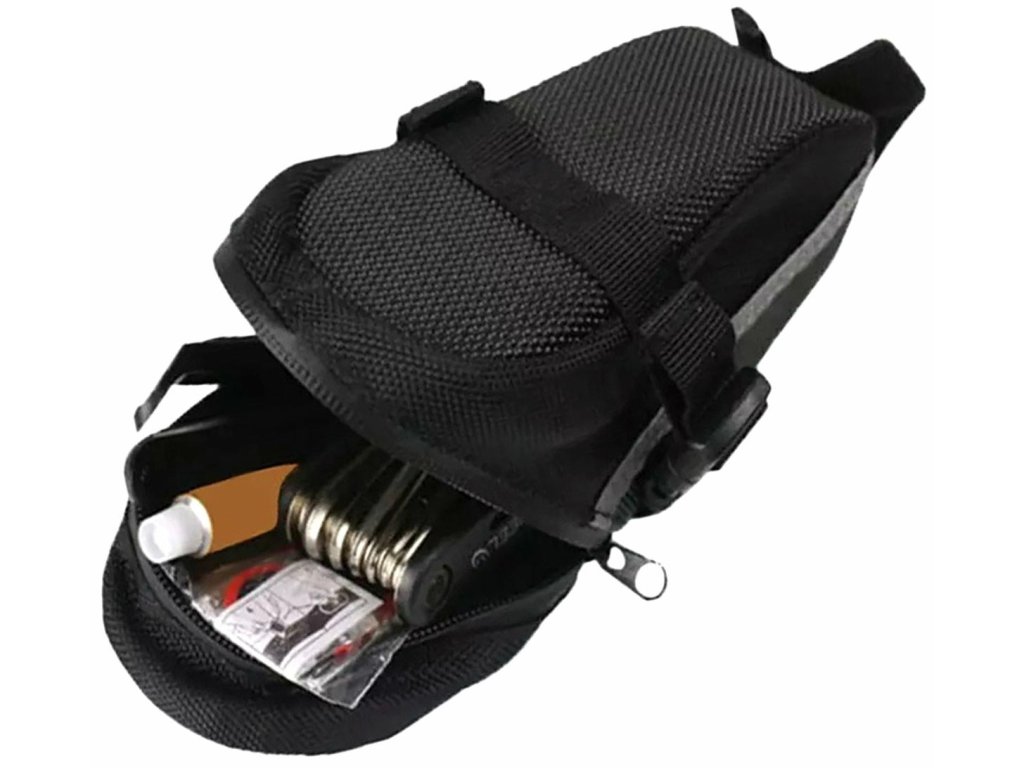 Praktická taška na kolo pod sedlem – umožňuje pohodlnou a bezpečnou přepravu drobných předmětů. Snadno sestavitelné, vyrobené z pevných a voděodolných materiálů.
