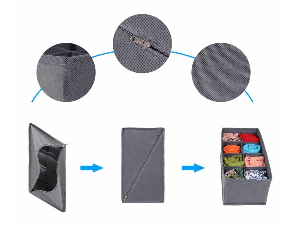 - Přenosný organizér vám pomůže udržet pořádek v zásuvkách se spodním prádlem – po otevření v nich konečně najdete oblečení, které potřebujete.