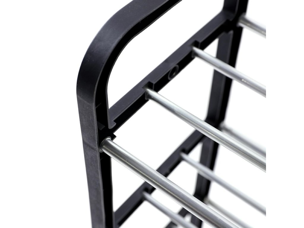 Velmi lehký a stabilní víceúrovňový botník. Je to perfektní řešení pro udržení pořádku v obuvi! Nezabere mnoho místa a perfektně se hodí i do malých chodeb a vstupních prostor. Jeho odolná konstrukce zajišťuje stabilitu i při plném naložení. Snadno pojme až 12 párů bot na čtyřech úrovních! Přesvědčte se sami, jak snadné je proměnit a uspořádat vaši chodbu!