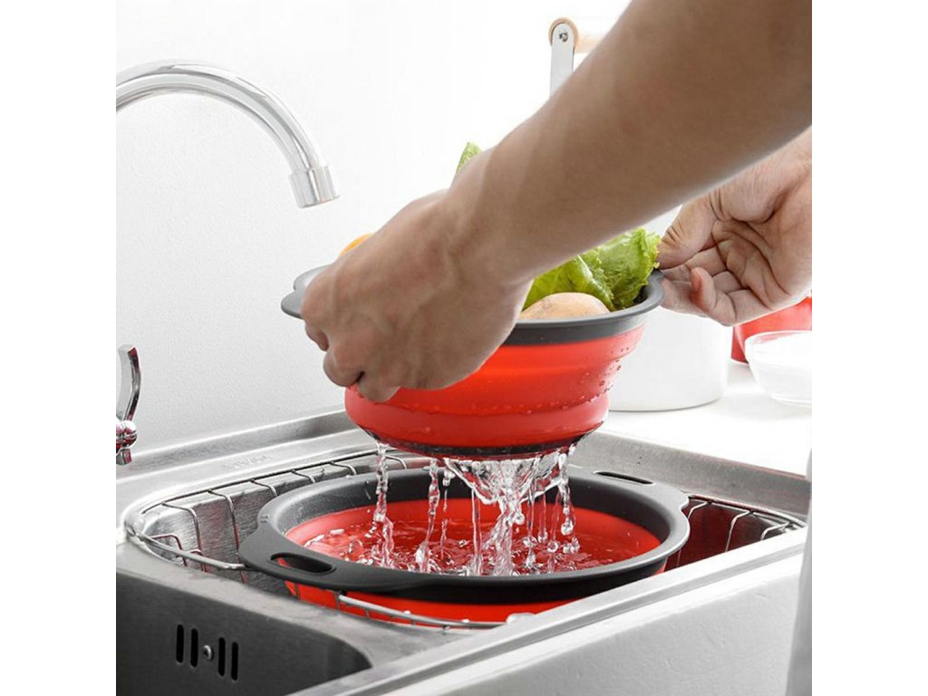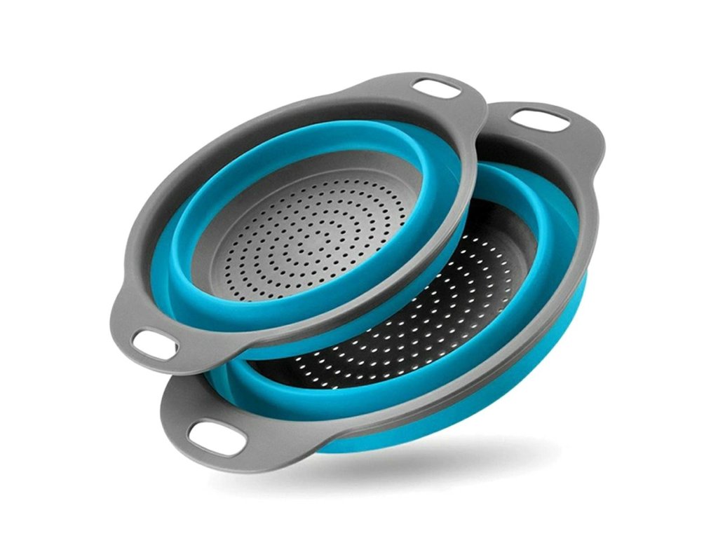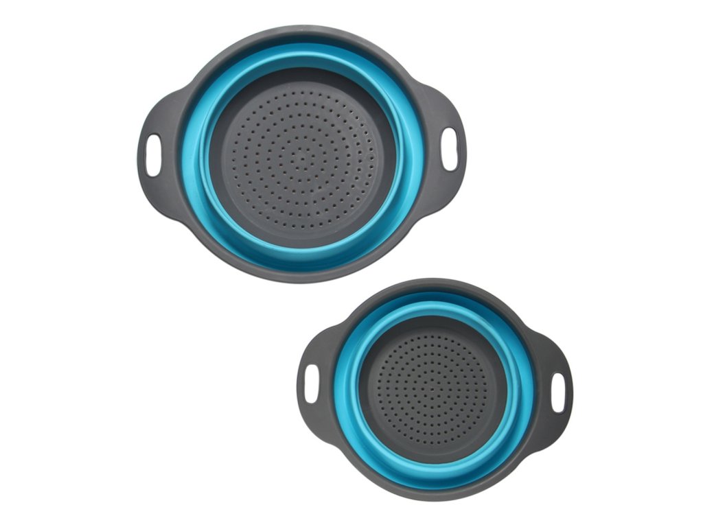 - Sada dvou extrémně praktických silikonových kulatých cedníků.