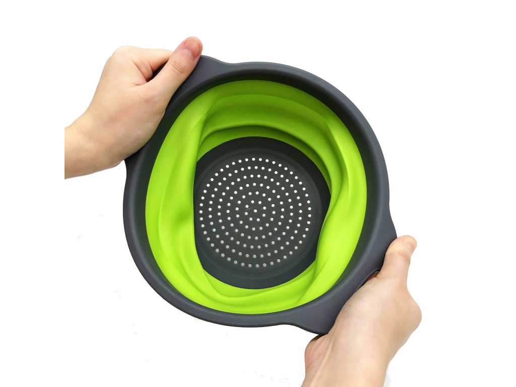 Sada dvou extrémně praktických silikonových cedníků kulatého tvaru. Jedná se o dokonalé řešení, které šetří cenný prostor. Ve složeném stavu je výška jednoho cedníku pouze 3 cm, což výrazně usnadňuje přepravu nebo skladování ve skříni. Osvědčí se v turistických aplikacích nebo v malých kuchyních. V rozloženém stavu dosahují výšky 8 cm, což umožňuje pohodlně opláchnout a okapat ovoce, zeleninu nebo těstoviny.