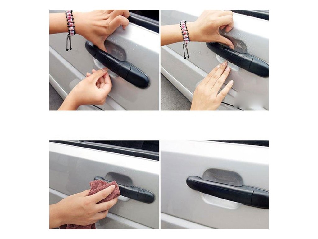 Ochranná průhledná fólie pod dveřní kliky. Zabraňuje poškrábání laku v prostoru pod dveřní klikou.