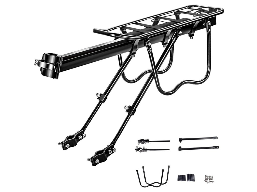 Univerzální zadní nosič kol. Určen pro univerzální montáž na sedlovku a rám pomocí dodaného rámu. Dvě další boční rukojeti umožňují přepravu brašen na kola. Možnost pohodlného nastavení výšky umožňuje přizpůsobit nosič velikosti kola.