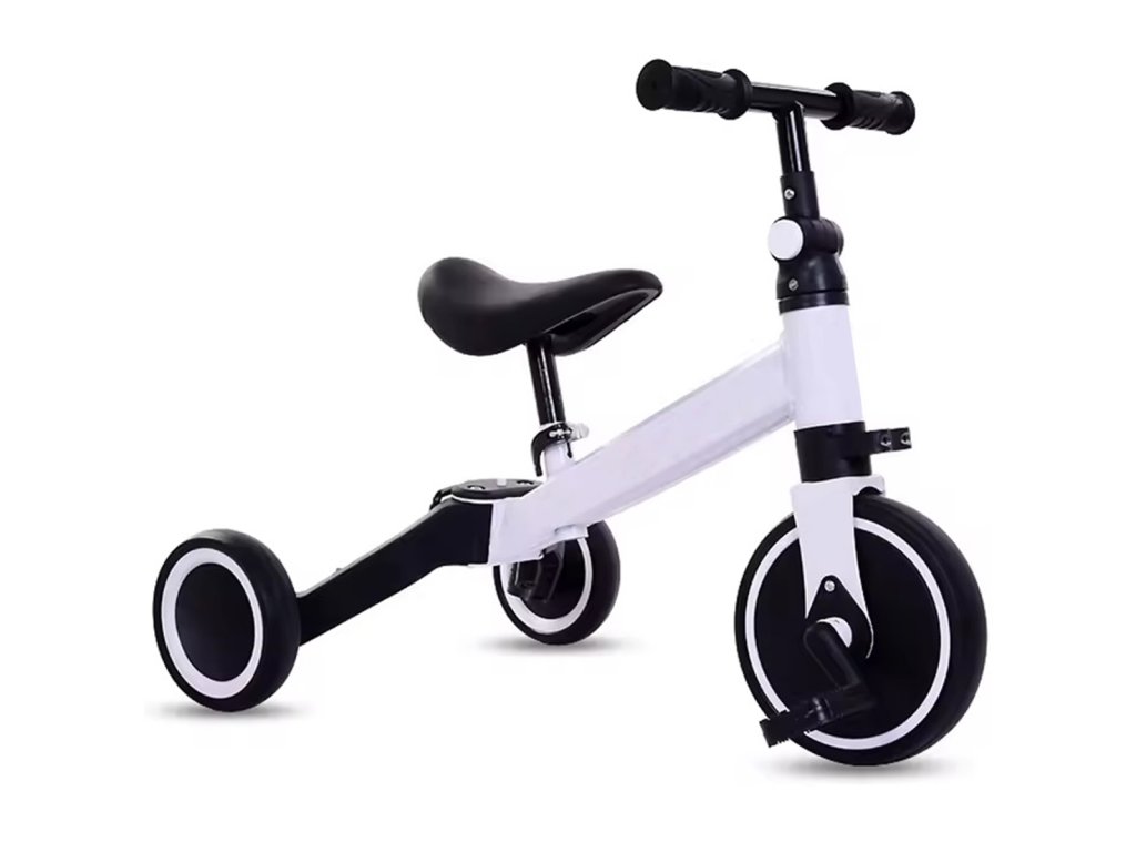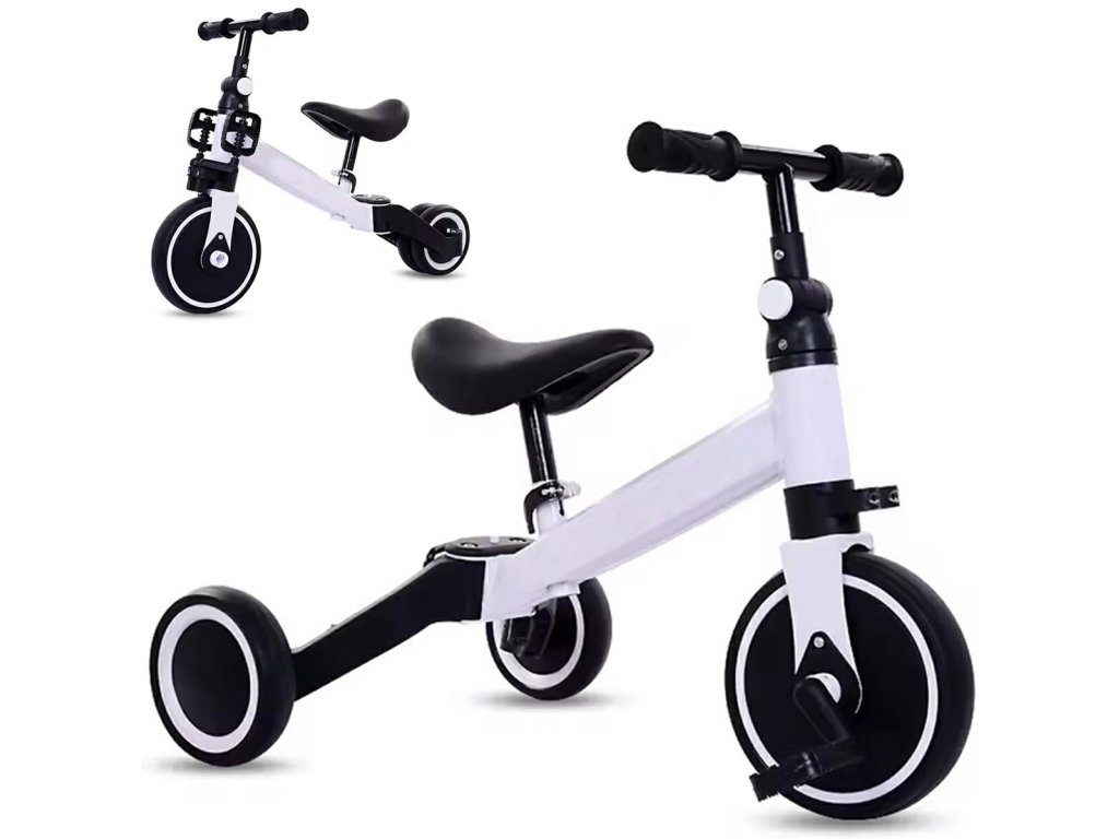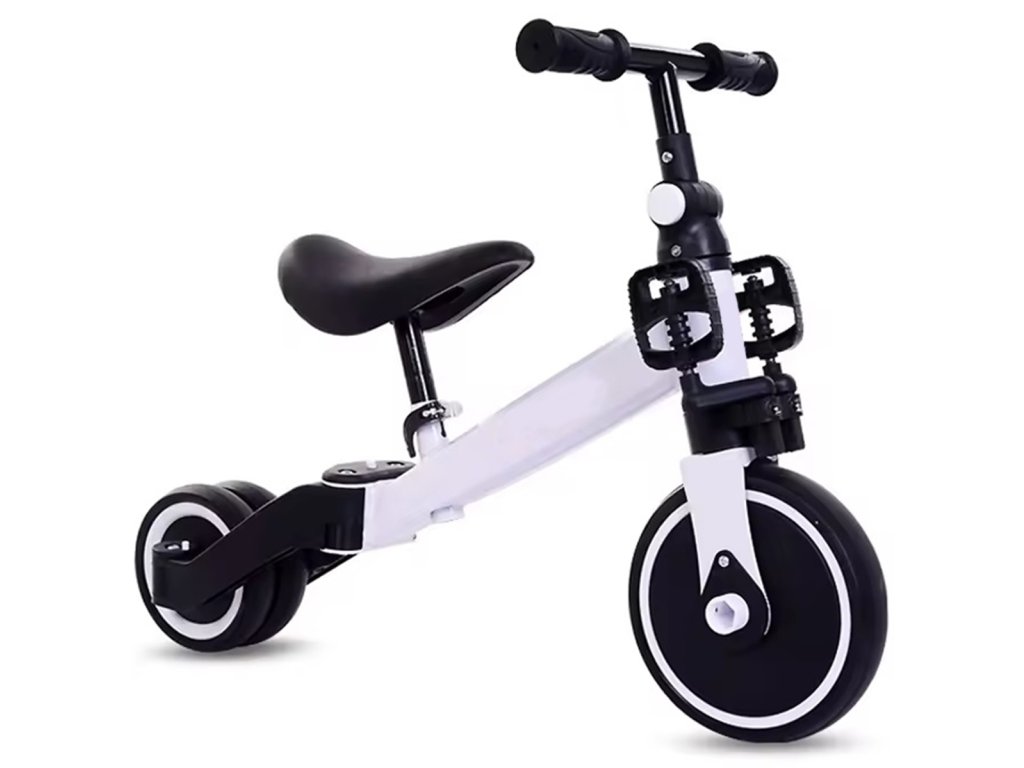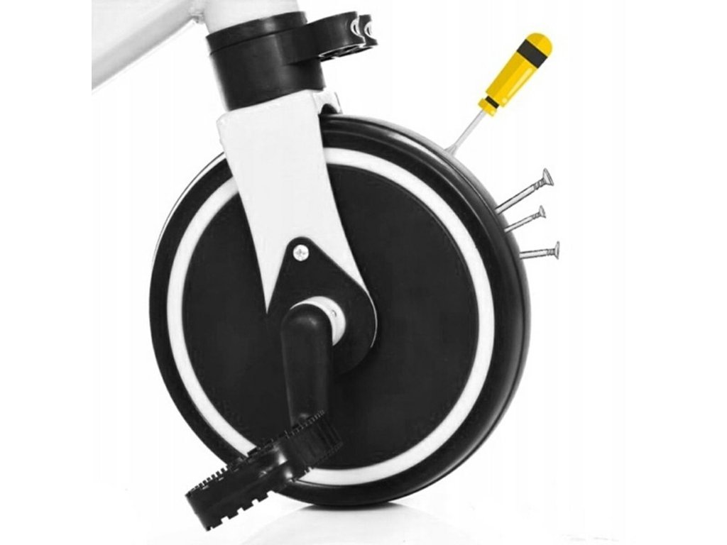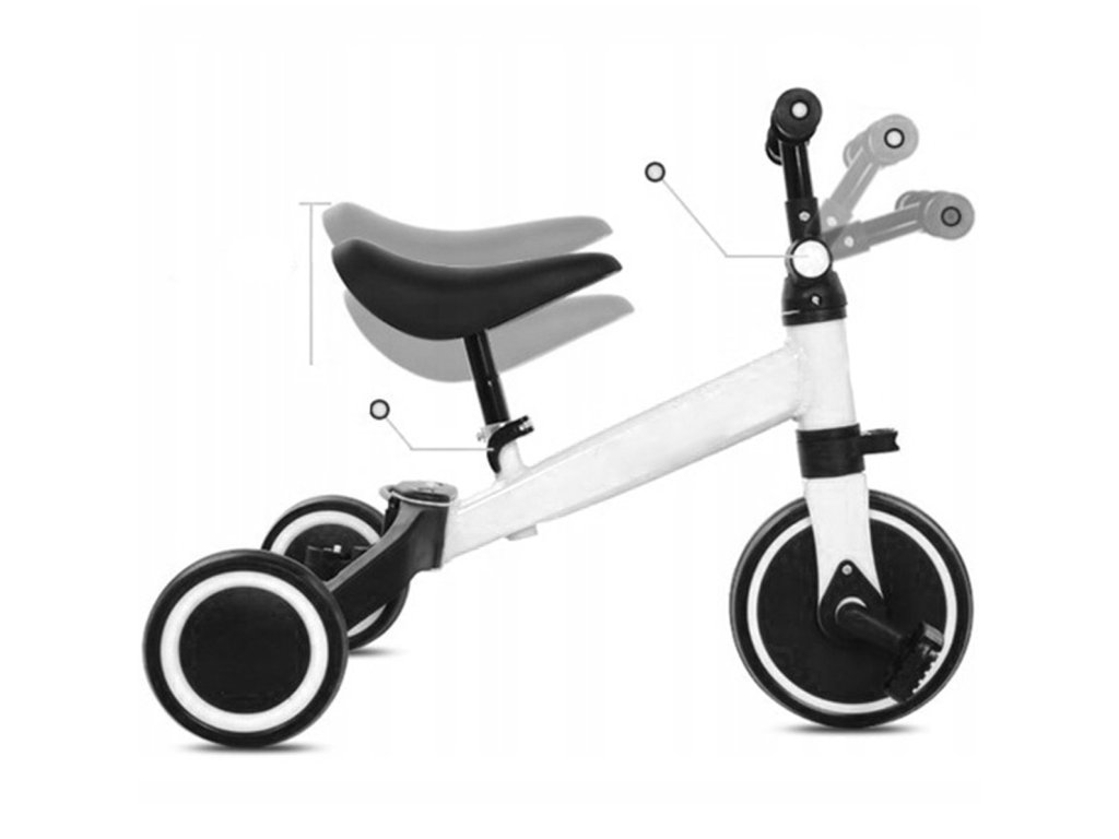 Pevný a univerzální design, který lze snadno přizpůsobit věku a dovednostem dítěte. Schopnost složit zadní kola a složit a rozložit zadní pedály vám umožní snadno přeměnit kolo na jízdu. Pohodlné, měkké sedlo je výškově nastavitelné a řídítka jsou potažena protiskluzovým materiálem. Všechna kola mají vrstvu EVA pěny, která zabraňuje poškrábání povrchu a mírně tlumí při jízdě. Možnost rychlého složení rámu usnadňuje přepravu a přenášení kola.