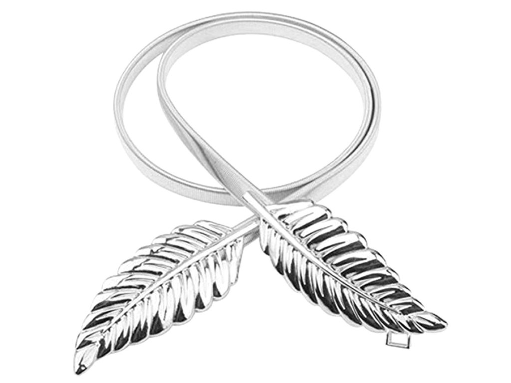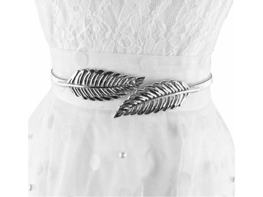 Lehký, kovový ozdobný pásek k šatům. Pohodlná přezka s motivem listů se zapínáním na patentku. Velmi tenký (pouze 1 cm široký).