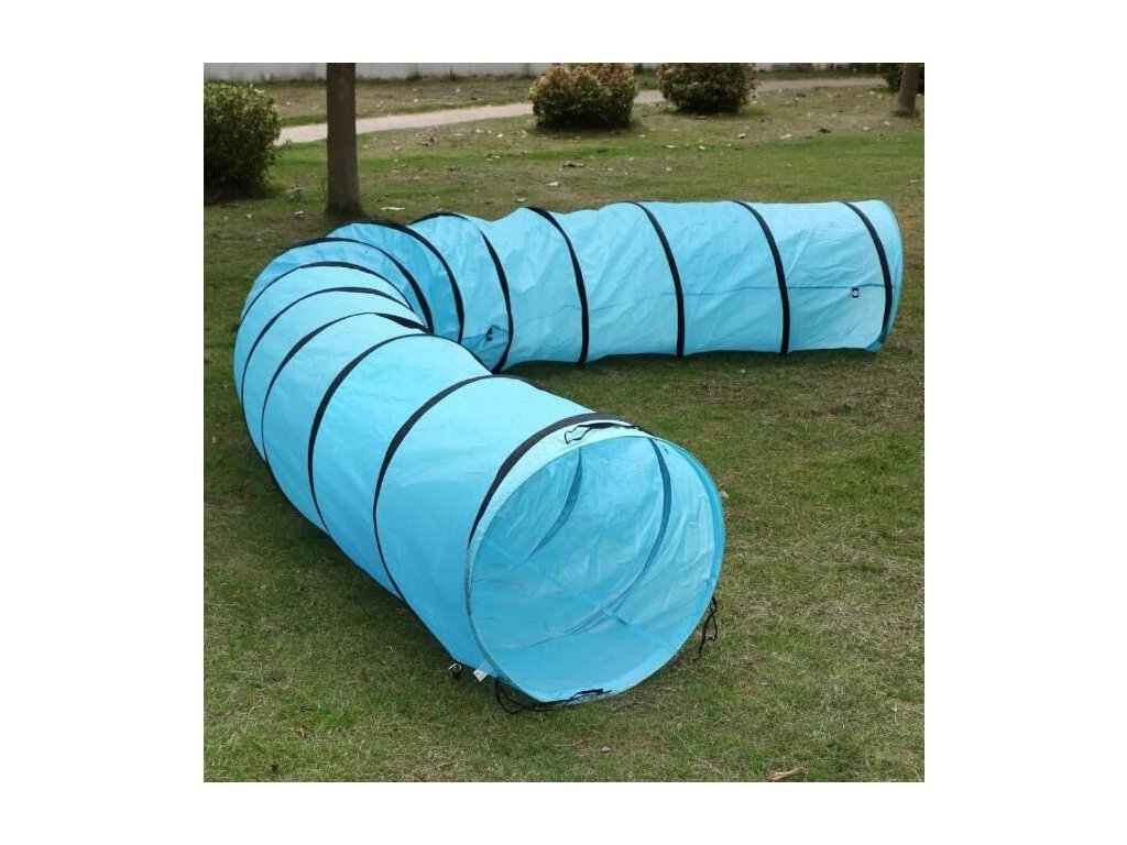 Prolézací tunel Tunnel Tent zprostředkuje dětem spoustu bezpečné zábavy, ale poslouží i jako pomocná překážka pro drezurování psů při přípravě na agility soutěže. Jednobarevný, azurově modrý tunel je vyrobený z jednovrstvé a prodyšné polyesterové látky a zapošitého spirálového drátu. Lehká tkanina se snadno udržuje čistá za použití vodou namočeného hadříku. Délka tunelu je buď téměř 300 cm nebo téměř 520 cm s hmotností cca 1,4 nebo cca 2,3 kg v závislosti na preferovaném modelu. Tunnel Tent se snadno rozloží i sbalí během několika sekund do příslušné cestovní brašny. Tunnel Tent je dostupný ve dvou rozdílných délkách s jednotným průměrem 60 cm. Ke každému z tunelů patří sada kovových kolíků pro ukotvení k zemi. Získejte prolézačku Tunnel Tent pro děti nebo pro své pejsky a zprostředkujte jim pestrou zábavu v pohodlí domova. Upozornění: Nepoužívejte prolézací tunel na hrubých a drsných plochách, jako je beton a dlažba.Dodatočné parametre